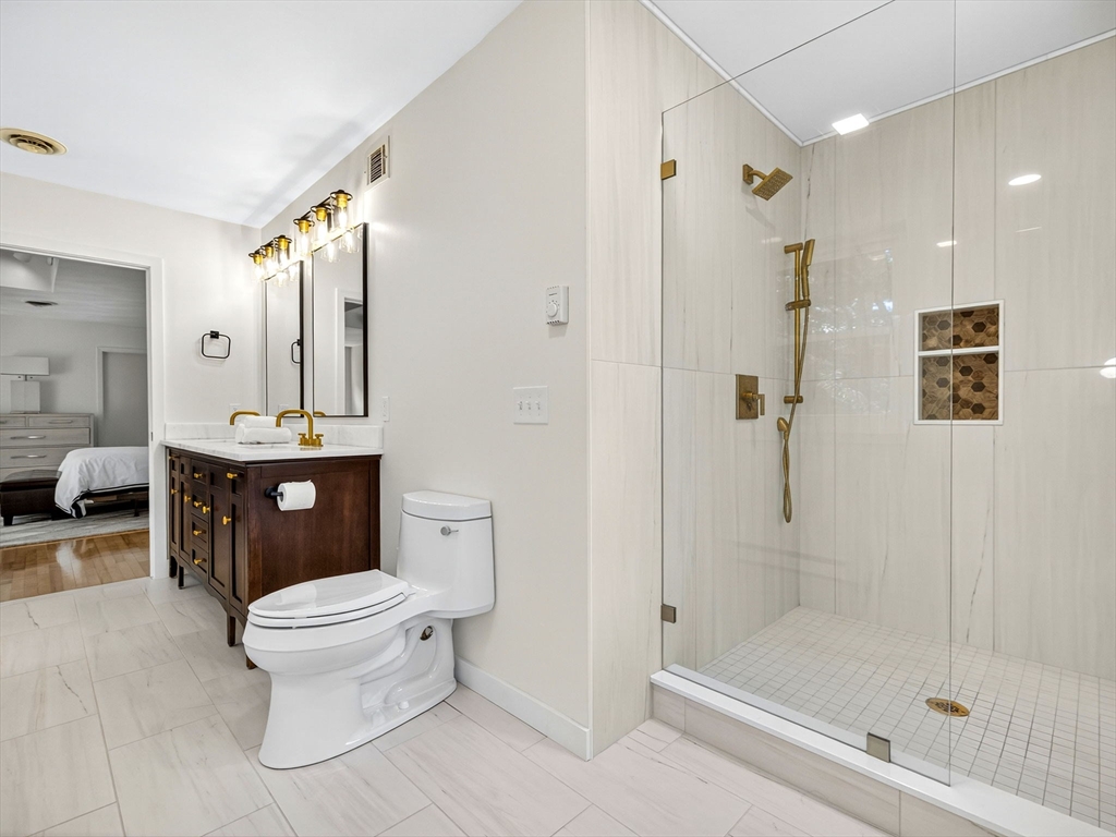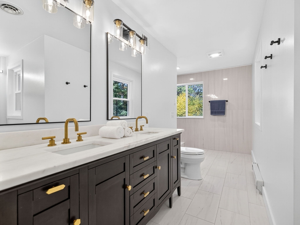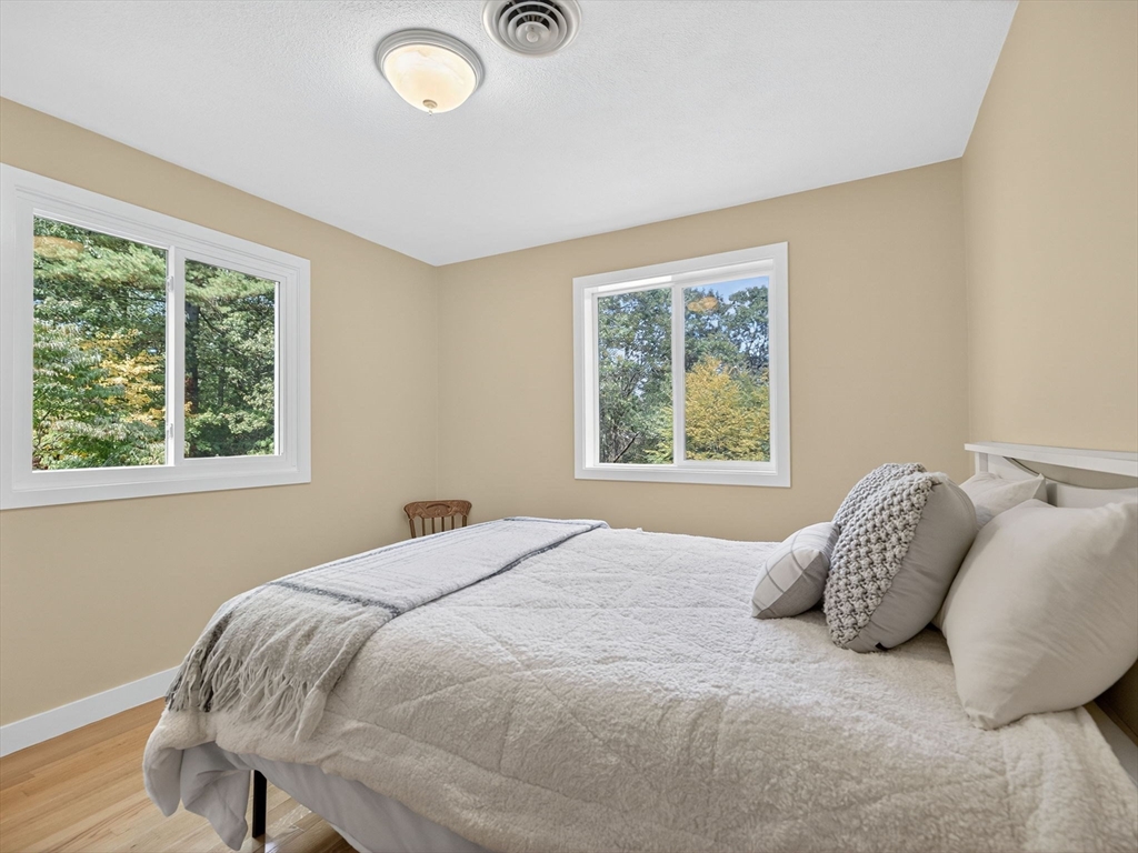 Tucked away on nearly 2 private acres and surrounded by lush greenery, this contemporary colonial feels like a serene woodland retreat, yet it’s just minutes from the heart of Wayland. The open-concept kitchen flows into a welcoming family room, with an adjacent dining room perfect for entertaining. A sunken living room with dramatic windows floods the space with light and offers peaceful, tree-filled views. The first-floor office adds work-from-home ease, while upstairs, the luxurious primary suite features a spa-like bath, vaulted ceilings, walk-in closet, and Juliet balcony. Three additional bedrooms and laundry complete the second floor. The finished walkout lower level includes a home gym and flexible living space. Enjoy indoor-outdoor living on the oversized screened porch and new brick patio - ideal for relaxing, entertaining, and soaking in the quiet, natural setting. A true private oasis.
