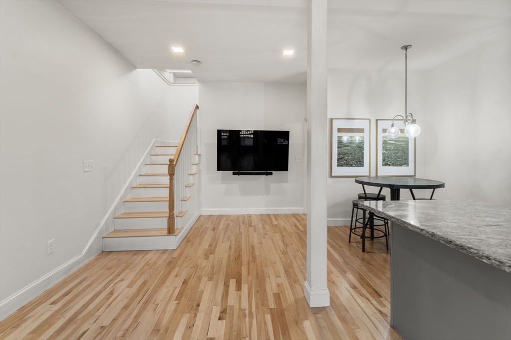 Welcome home to this thoughtfully updated 2-bedroom, 1.5-bath condo. With hardwood flooring throughout, the open-concept main level features a bright kitchen with stainless steel appliances, a spacious living area with a slider leading to your private deck, and a convenient half bath. Upstairs, you’ll find two generously sized bedrooms and a full bath. Fully remodeled in 2018 and well cared for since, this home also offers ductless mini splits (condenser replaced in 2025) and the convenience of in-unit laundry. Step outside to your deck - ideal for morning coffee or a quiet evening. This property also includes two off-street parking spaces. Located just moments from downtown Amesbury, you’ll enjoy easy access to restaurants, shops, and parks. This condo combines charm, comfort, and a fantastic location.