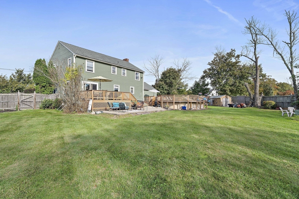 Cherished by the same family for 40 years, this beautifully maintained Colonial sits on a spacious corner lot in a sought-after neighborhood. A welcoming farmer’s porch leads you inside, where hardwood floors flow throughout the main level. The home features a family room with fireplace, a bright living room, & a half bath with adjacent laundry. The expansive kitchen offers stainless steel appliances, a granite island, a dining area, & access to a custom deck with a hot tub & pool, perfect for entertaining. Upstairs, the main bedroom includes double closets & an ensuite bath, complemented by three additional bedrooms & another full bath. The finished lower level adds flexible space, currently used as office & recreation rooms, along with ample storage. A new Navies gas heating system, roof replaced 7 years ago & 200 amp electric add to the appeal! A spacious two-car garage, along with peach & pear trees & flourishing blackberry & raspberry bushes, completes this inviting property.