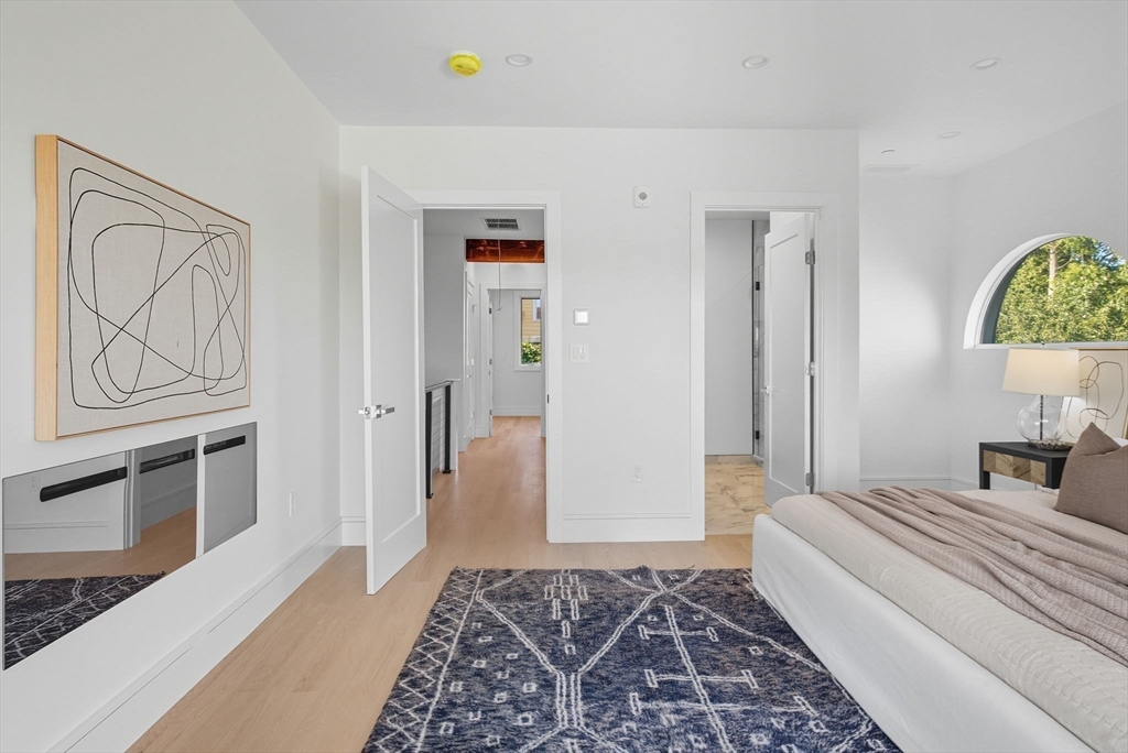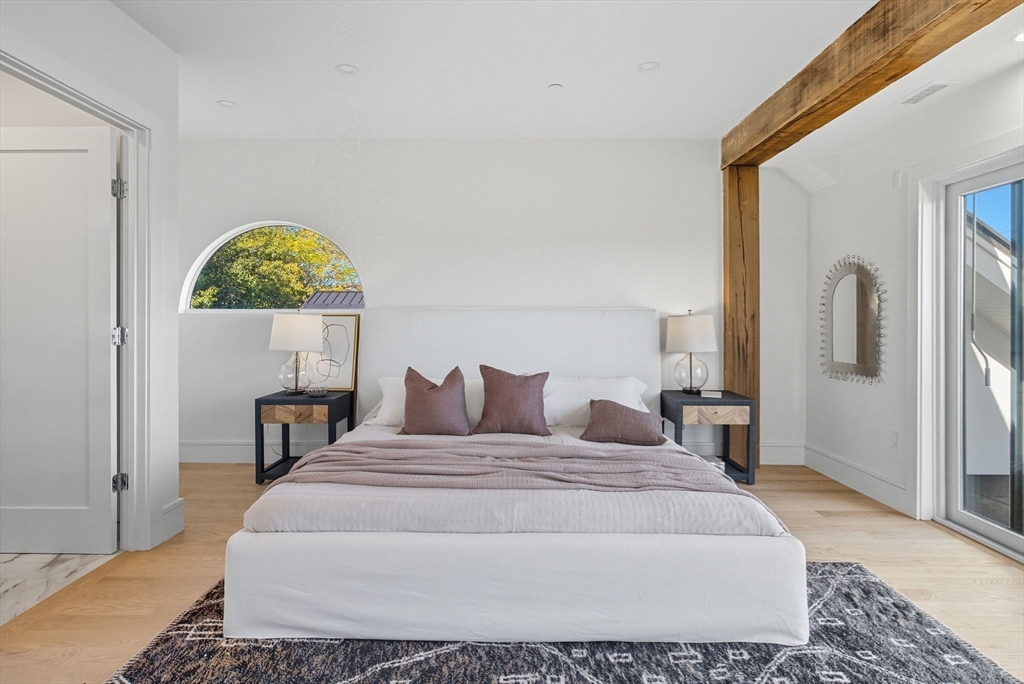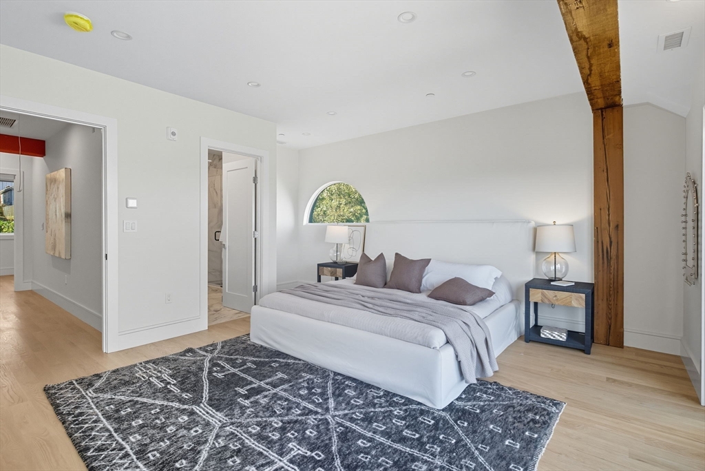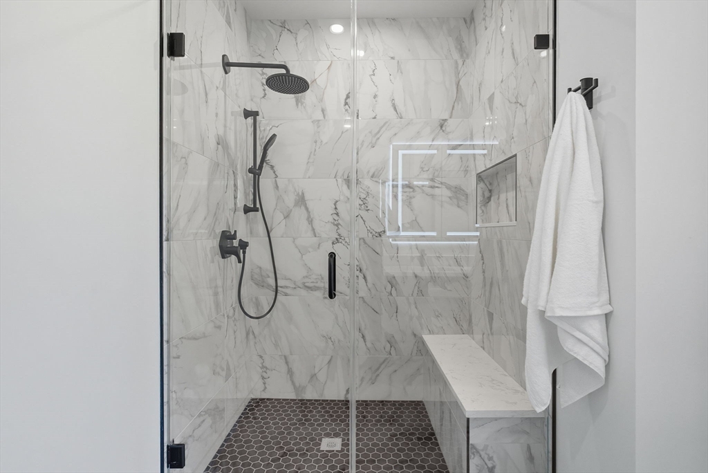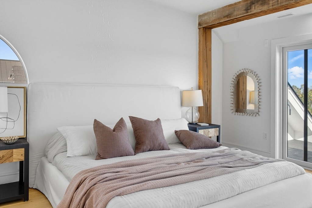 As the flagship residence at The Pearl, Unit 1 showcases one of the most spacious layouts in the collection, blending ocean views with striking modern details. Steps from the shoreline in Winthrop’s Point Shirley, it spans two levels with hardwood floors, soaring cathedral beamed ceilings, and a fireplace that anchors the living room while a second warms the primary suite. The chef’s kitchen is appointed with a generous island, Bosch appliances, and custom cabinetry designed for both style and function. Upstairs, the primary suite opens to a private deck with ocean views, a custom walk-in closet, and a sleek tiled shower bath, while the second bedroom includes its own walk-in closet and a full bath with a soaking tub. Additional highlights include in-unit laundry, two off-street parking spaces, and the assurance of a one-year builder warranty. Minutes to downtown Boston by car or ferry, The Pearl delivers coastal living at its most elevated.
