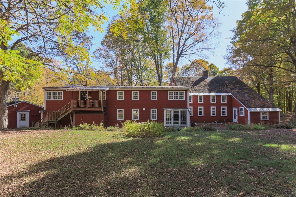 Expansive Saltbox Colonial set back on 6 private acres. Five min walk to Groton Center and the nearby thriving local shops & restaurants, along with direct access to the rail trail. This property features 4 bedrooms 5.5 baths a 3 car garage along with a detached work shop, a massive barn & two sheds. Lots of wide pine floors are boasted throughout the first floor & second floor, except for the bonus area. Lovely home office with a 3/4 bath and direct access to the expansive garage. There is a pretty sunroom between the office and kitchen. Large eat-in-kitchen is open to the dining and family room. Off the kitchen you will find a half bath & laundry room. Second floor features 4 spacious bedrooms, 4 full bathrooms and a bonus area/in-law suite. This property offers so much potential with it's beautiful antique charm and could also effortlessly function as an in-home business.