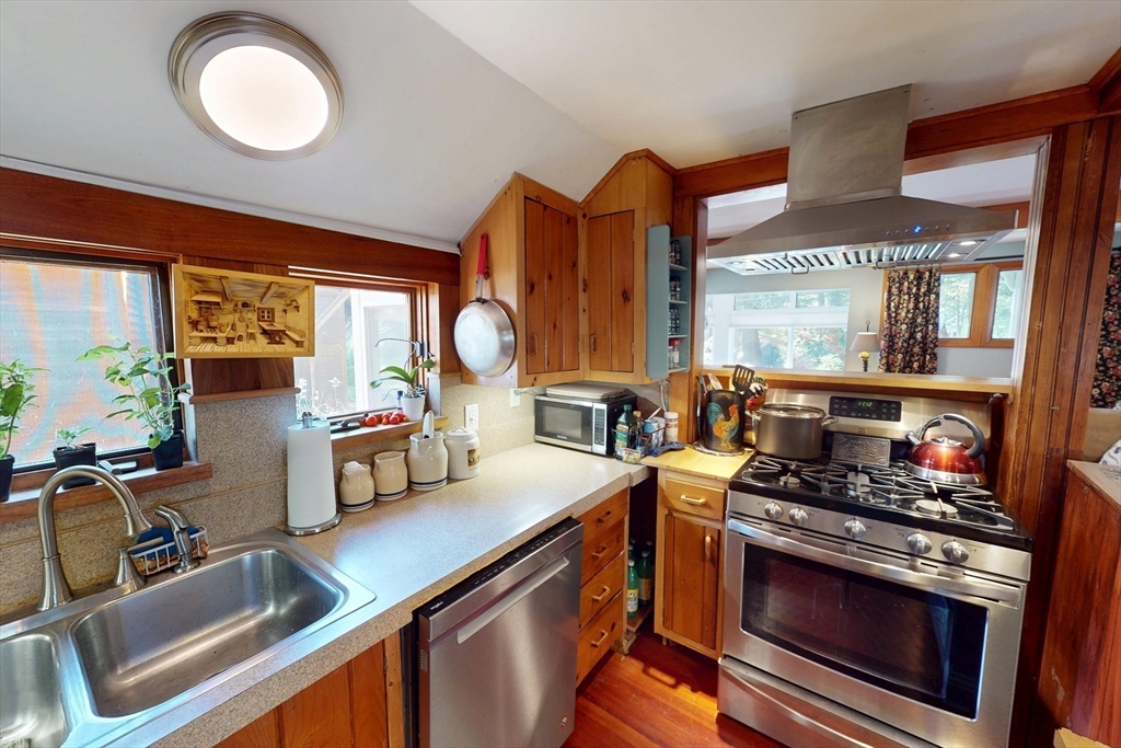 Welcome to this beautifully updated cottage, fully remodeled in 2018 and ready for its new owner! Nestled in historic Laurel Park, this cozy home boasts an open-concept layout & hardwood floors throughout, creating a warm and inviting atmosphere from the moment you step inside. The cottage features newer systems for peace of mind — including roof, plumbing, HVAC & electrical panel. The eat-in kitchen is equipped with a range, refrigerator, and dishwasher, making meal prep and clean-up a breeze. Upstairs, the spacious bedroom offers comfort and charm with hickory hardwood floors and two generously-sized closets. Large front windows flood the home with natural light, enhancing its bright and airy feel. The remodeled full bath includes full-sized washer and dryer. The first floor also features a small bonus room perfect for a home office. Central air, heated full basement with workshop area & plenty of storage, and lovely outdoor space w/Goshen stone patio complete this move-in ready gem!