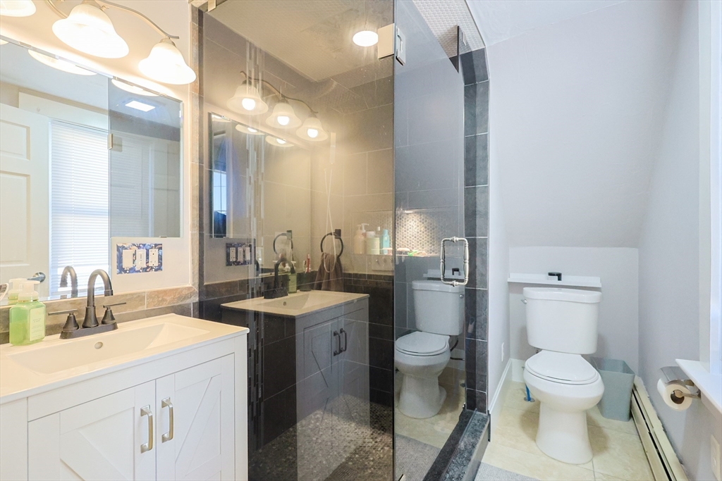 You have to see this stunning two family home with so many upgrades and super location!! This home would be fantastic for owner occupied or as an investment. The first floor offers a kitchen with stone counters, a breakfast bar, and pantry storage. This unit also has a large dining room, two large bedrooms, a bright living room, lots of storage, and two upgraded baths with tile shower enclosures and many other upgrades. The second floor has an open floor plan living/dining room, kitchen with stone counter tops, two upgraded baths, lots of storage and many other updates. With this home you also get basement space, a shed with electricity, the yard is fenced, and you have a beautiful patio. You truly have to see this stunning home to appreciate all the upgrades!!!