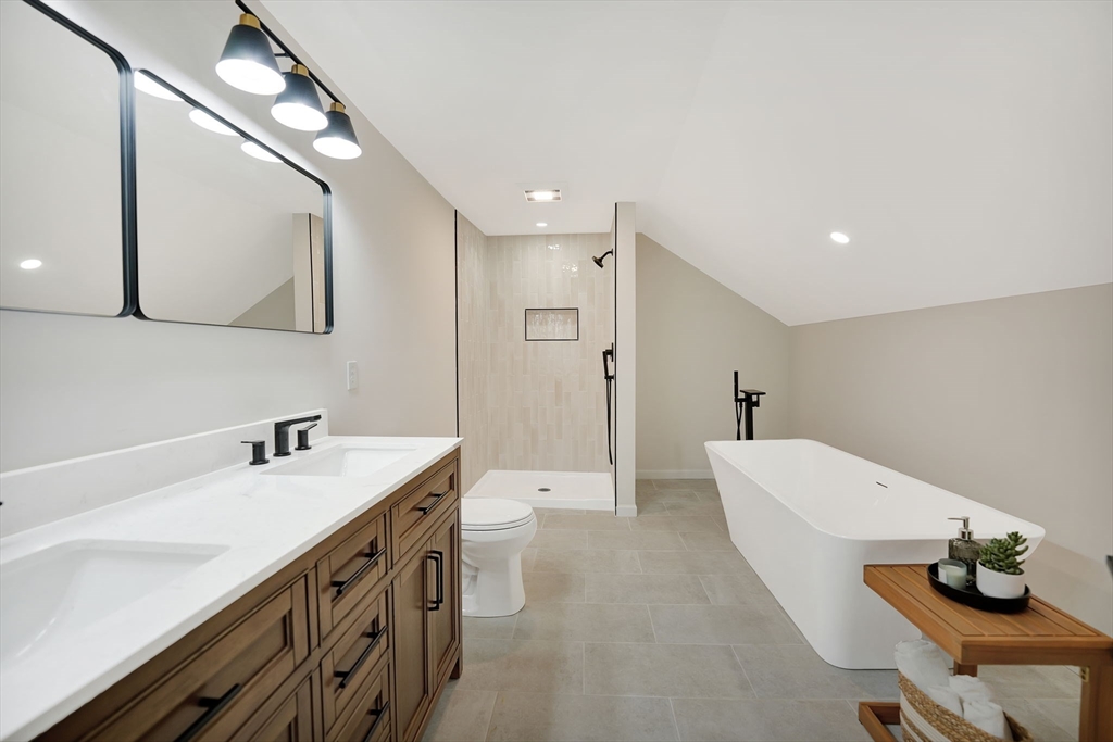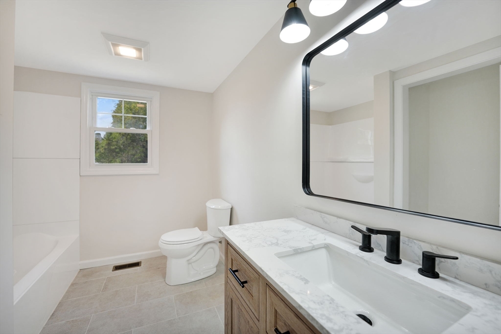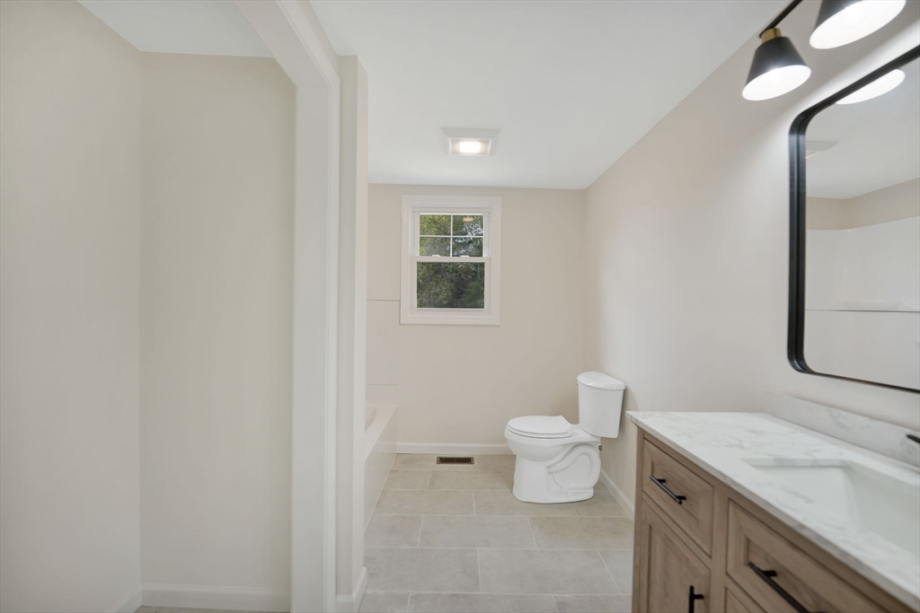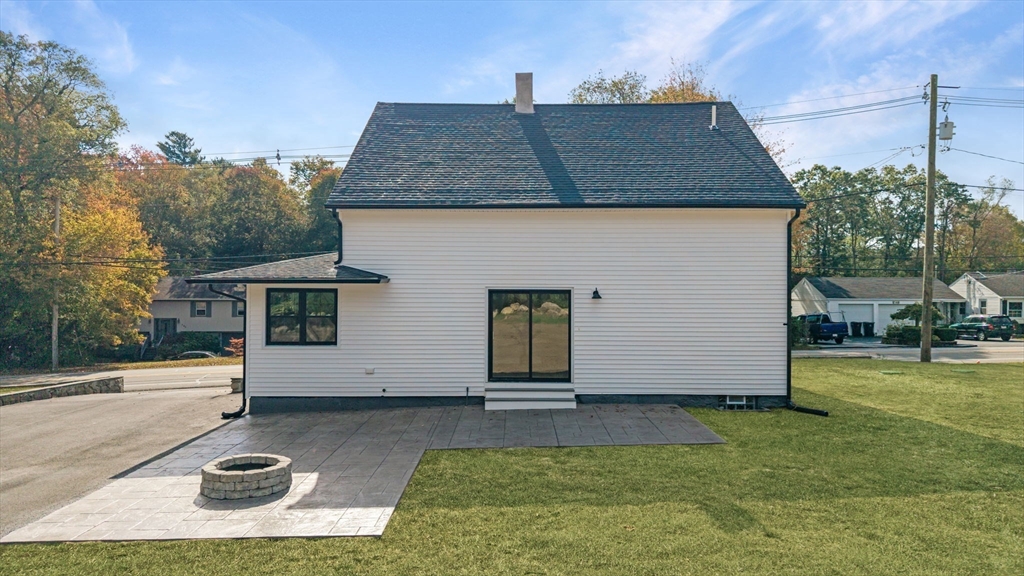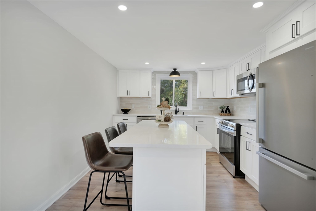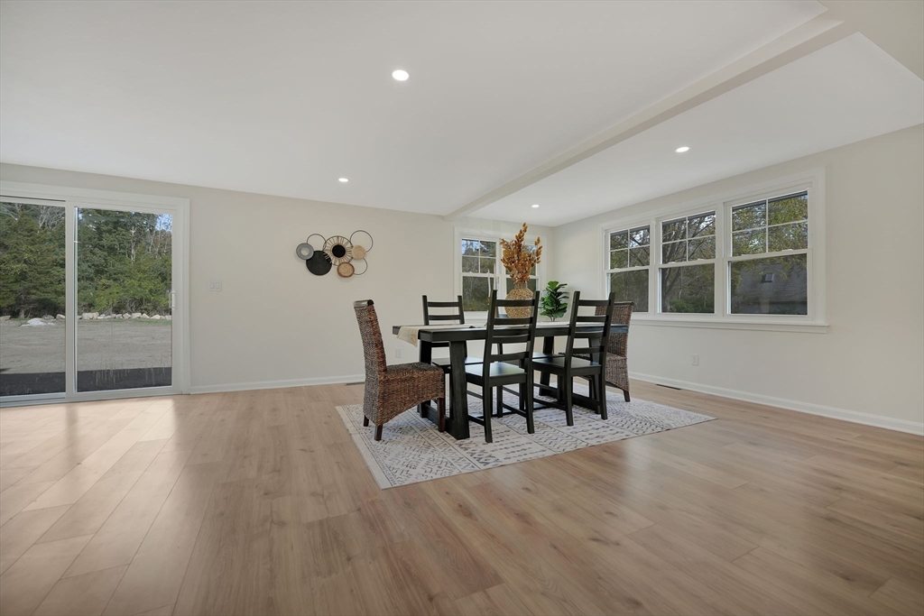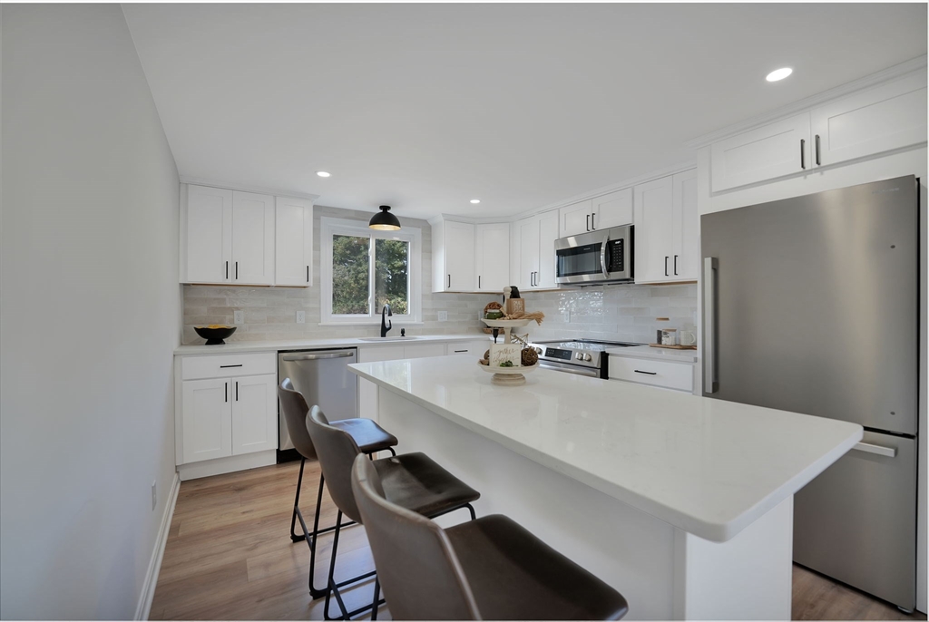 Gorgeous four-bedroom, three-bath home in Dartmouth set on over 2 acres of land, completely rehabbed from top to bottom! Featuring brand-new vinyl siding, windows, doors, heating system, and central AC, this home offers modern comfort and efficiency. The stunning new kitchen showcases quartz countertops, stainless steel appliance suite, and open flow perfect for entertaining. Enjoy new flooring throughout the first floor and beautifully refinished hardwoods on the second. The spacious master bedroom includes a luxurious en-suite bath with a soaker tub and walk-in shower, complemented by two additional brand-new bathrooms. Outside, a huge cleared lot with a new stamped concrete patio, built-in fire pit, and newly paved driveway complete this one-of-a-kind property—offering the perfect blend of privacy, space, and high-end finishes in a prime Dartmouth location.