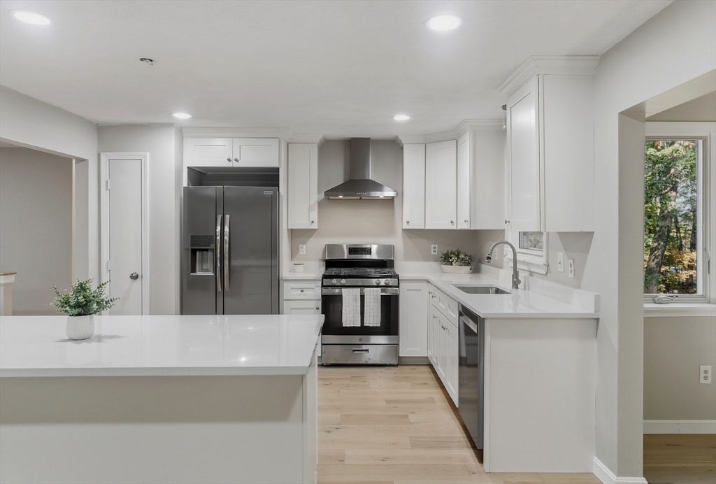 Beautifully renovated 4-bedroom home with a bright open floor plan and stunning new kitchen featuring quartz counters, stainless appliances, and island seating. Spacious living and dining areas offer great natural light. Three bedrooms on the main level with stylish updated baths. The full walk-out lower level provides incredible flexibility perfect for extended living, office, or a teen suite with a large bonus room, full bath, laundry, and direct access to the backyard. Recent updates include roof, heating, windows, flooring, and more. Set on a generous private lot, the yard is ideal for entertaining and outdoor enjoyment. Convenient location close to schools, parks, trails, dog park, Rail Trail, shopping, and major routes. A beautifully finished home with nothing to do but move in!