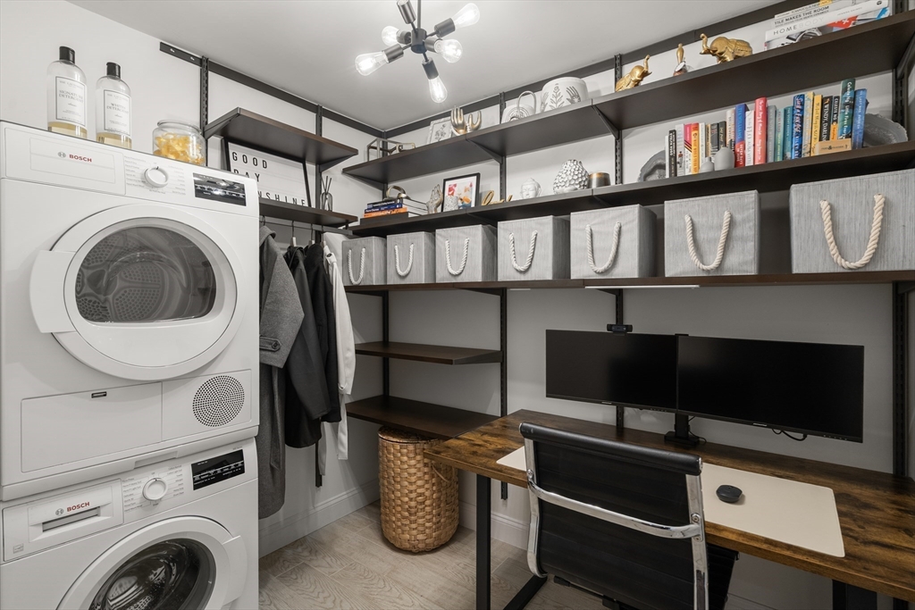 Cozy, bright, ground level and move in ready unit with its own separate entrance. Features 2 bedrooms, high ceilings, open floor plan, fresh paint throughout, engineered hard wood floors, recently remodeled bathroom with new tile floor. Custom closet organizer systems in both bedrooms. Kitchen has lots of cabinets, granite counter tops, Bosh dishwasher, GE stainless steel refrigerator and microwave. The in-unit laundry area is large enough to use as a study or extra storage. Enjoy fresh air and relaxation in a private patio set up along side of a pretty tree lined street. Ideally located this unit is a commuter's dream, within walking distance of the South End's best restaurants, cafes, Copley Square, Boston Medical Center, the Silver Line, bus line and easy access to Mass. Pike and Route 93. Pet friendly association.
