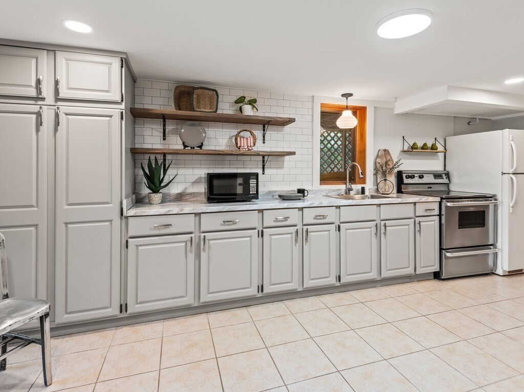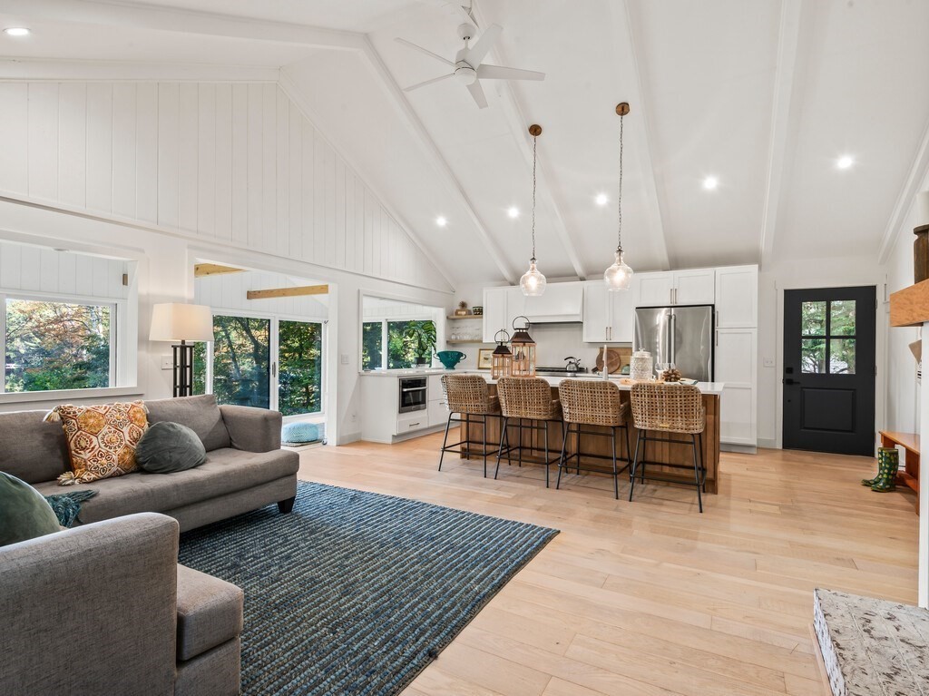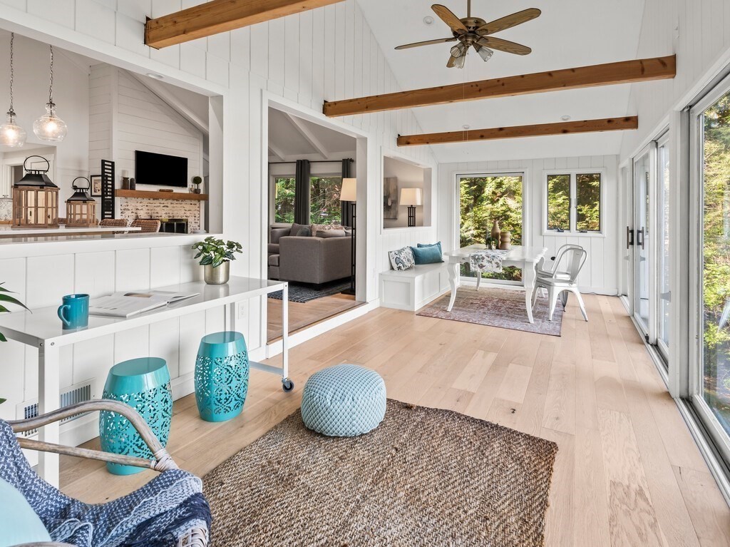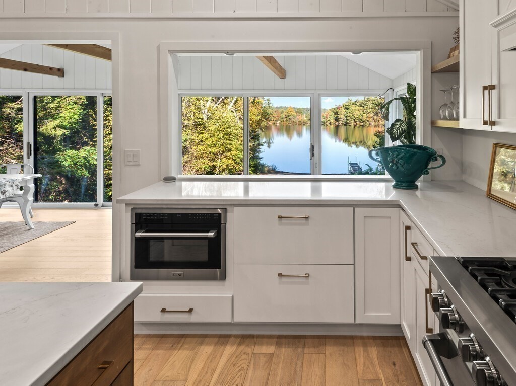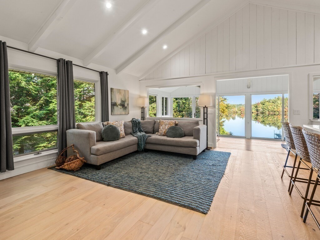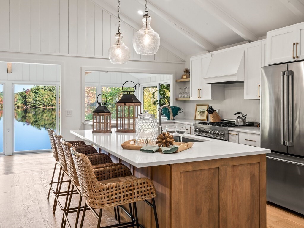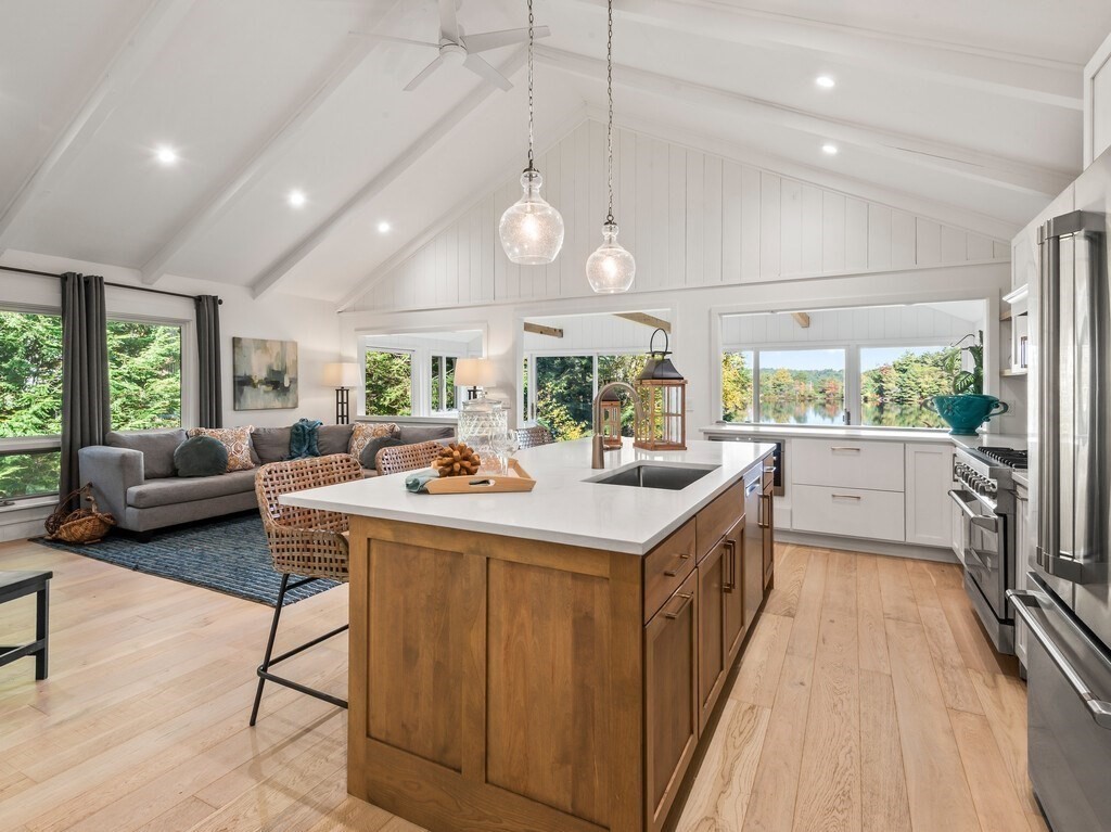 INCREDIBLE LAKEFRONT HOME W/ PRIVATE BEACH ON SOUGHT AFTER SUNSLET LAKE. Major upgrades (~2021) creates a turnkey lakefront home. Remodeled kitchen w/ magazine cover-worthy finishes. Open concept new chef's kitchen (quartz counters, high-end SS appliancews, 6 burner stove, & huge island w/ stunning lighting), cottage-style cathedral ceiling, Living Room w/ FP, & light filled dining and bonus area. Two bedrooms on main floor, with beautiful remodeled bath. Downstairs is perfect for visiting family and guests w/ a 3rd bedroom, full bath, 2nd kitchen and Family Room that could be an office, additional sleeping space, or? Walk out to private backyard w/ level lawn and a few steps down to your own private sandy beach! New roof 2021. Power & Sail boats welcome. Kayaks, paddleboards. Ashburnham is known for its clean and beautiful lakes, hiking trails and state parks. Mt Wachusett ~15 min away. OPEN HOUSE OCT 11, 1-2:30 and OCT 12, 11-12:30. Any offers reviewed Monday evening.