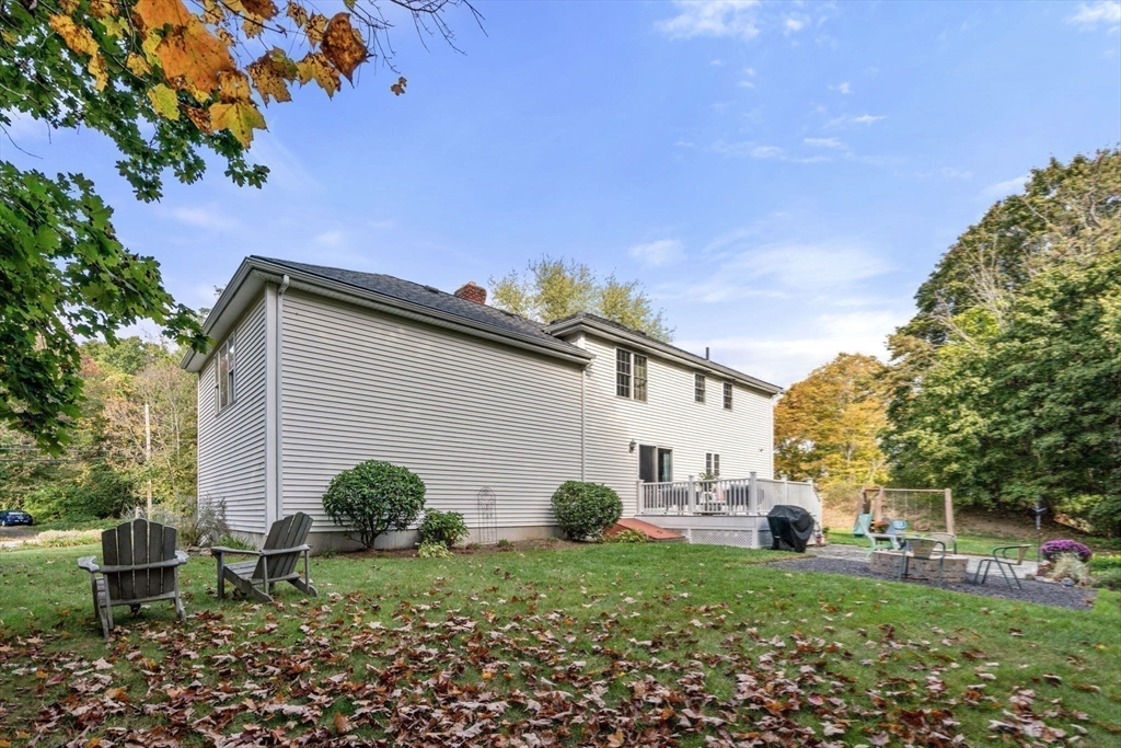 Welcome Home to this spacious Colonial !!The 1st floor has open floor plan which boosts large kitchen, breakfast bar, dining room, office/den, half bath and laundry room. Off the kitchen features an extra bonus room with cathedral ceiling and fireplace making it a great space to celebrate holidays and making memories. Second floor showcase 4 bedrooms and 2 baths with the master bedroom features en-suite and walk in closet. Enjoy the private wooded outdoors on your spacious deck, and patio. New Roof is 2 yrs old and driveway 3 yrs old. Property is close to RI and MA highways.