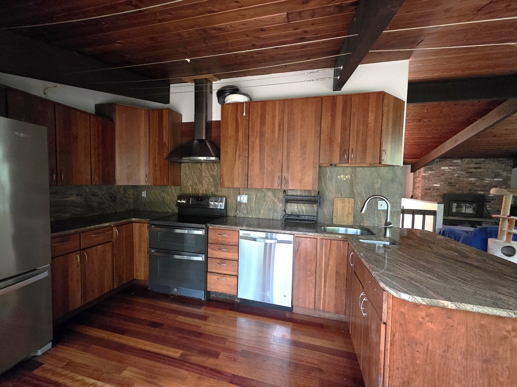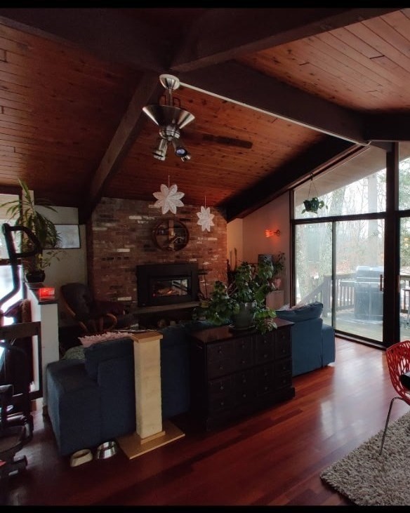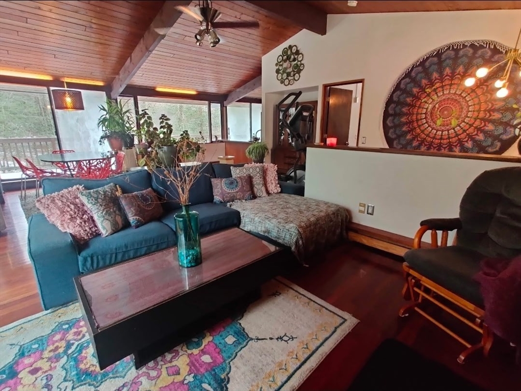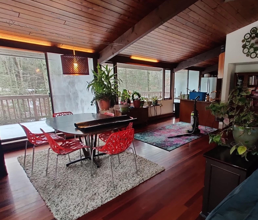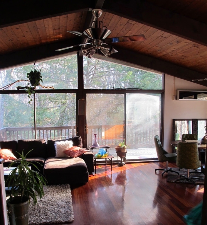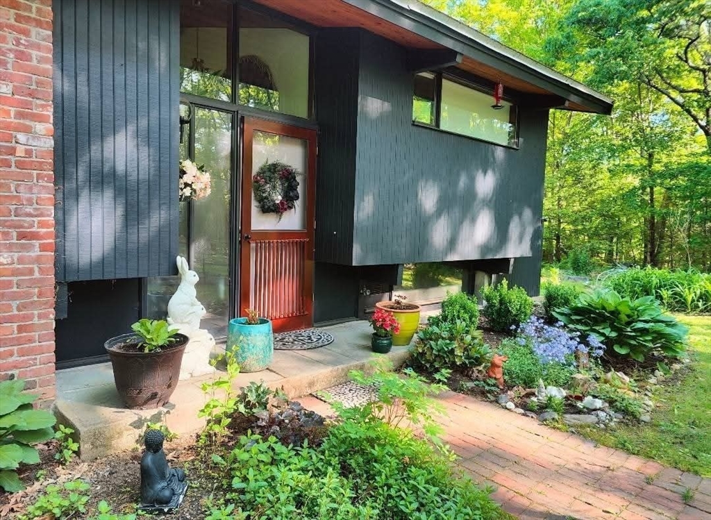 Nestled on a quiet cul-de-sac, this beautifully restored 1979 Deck House sits on 2.1 acres, offering a perfect blend of architectural integrity and natural serenity. This home features post-and-beam construction, soaring ceilings, w/floor-to-ceiling glass. Large open and inviting living space incl. 3 bds, 2 baths, 2 FPs, and custom Cherry Kitchen w/Granite Counters. Many recent updates include a BRAND-NEW septic, well pump, Fujitsu mini-split heat and A/C pump, and a newer Fridge & Stove. A rebuilt deck is overlooking a Nature Lovers Paradise. Check out the perennial herb gardens and berry trees abutting 170 acres of pristine conservation land and scenic trails for peaceful year-round enjoyment. Steps away are Sperry’s and Hovey’s Pond, ideal for bass fishing and winter ice skating — a 4-season retreat. This home is ideal for anyone seeking peace, privacy, and mid-century craftsmanship, in a setting that feels worlds away yet close to everything, plus a short 15 mins to a Train Station