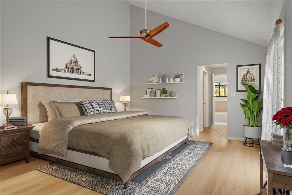 Welcome to Spyglass Hill - A wonderful community with all your needs steps or moments away! Fantastic sun filled freshly painted townhouse offering spacious rooms throughout including a fireplaced living room, grand dining room perfect for entertaining large gatherings & a fully applianced eat-in-kitchen all of which have access to the private deck to extend your entertaining outdoors. Skylit stairs lead you upstairs to your grand primary bedroom suite w/Romeo & Juliette style balcony, cathedral ceilings, large walk in closet & additional double closet plus a spacious ensuite bathroom w/tub & separate shower. Also upstairs is a second spacious bedroom w/cathedral ceilings, lots of natural light, great closet space & private ensuite bathroom. Need a home office or additional space for guest - it has that too in the finished lower level w/daylight window & access to the 2 car tandem garage & laundry area. Fantastic commuter location! Come see for yourself & make it yours!