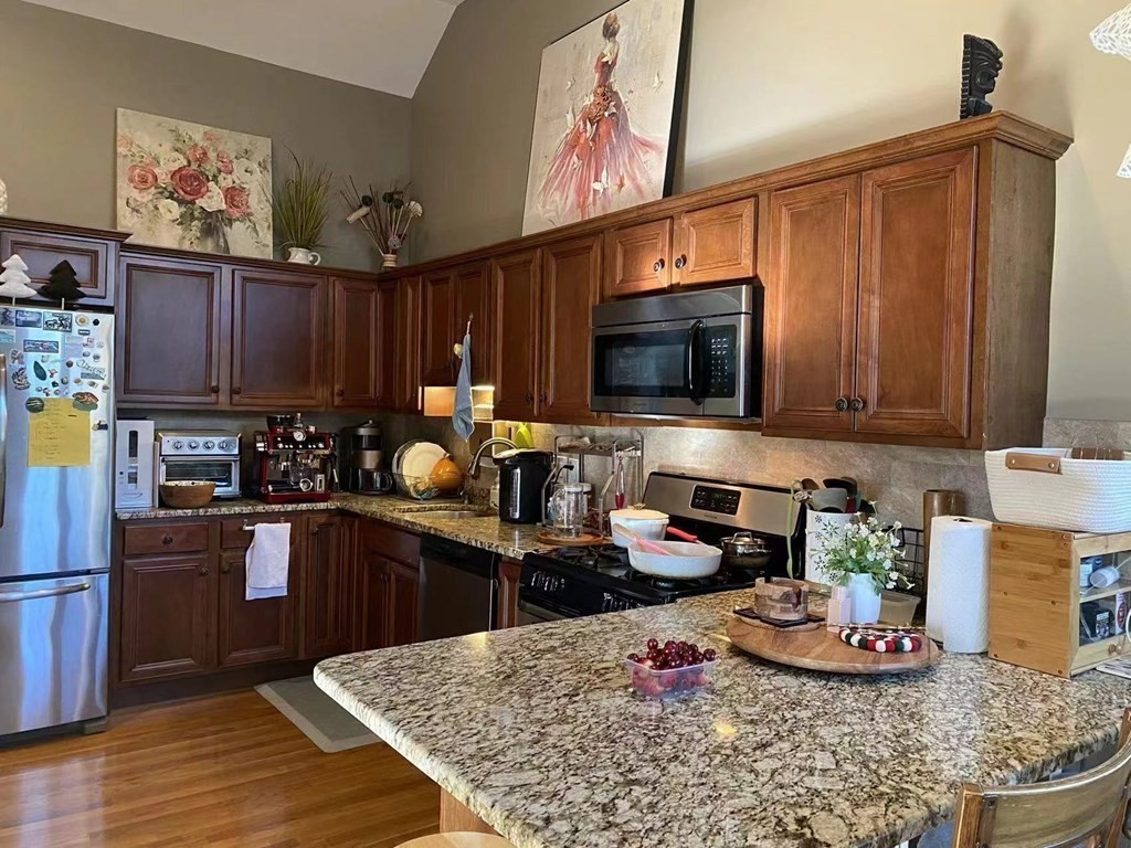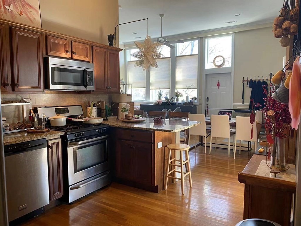 Welcome to this bright and spacious 2-bedroom, 2-bath unit ideally located just minutes from Wright’s Pond and highways. The inviting kitchen features stainless steel appliances, granite countertops, solid oak cabinetry, and a convenient breakfast bar for additional dining or prep space.Enjoy the open-concept living and dining area complete with gleaming hardwood floors, a cozy gas fireplace, soaring ceilings with crown molding, and large sun-filled windows that create a warm, welcoming atmosphere.The primary bedroom offers generous closet space and a private en suite bathroom with a relaxing jacuzzi tub. The second bedroom is equally spacious and versatile. Additional highlights include in-unit laundry, central A/C, a private patio area, an 8x8 storage unit, and two full-size deeded parking spaces.This exceptional home blends comfort, style, and convenience—everything you’ve been looking for!