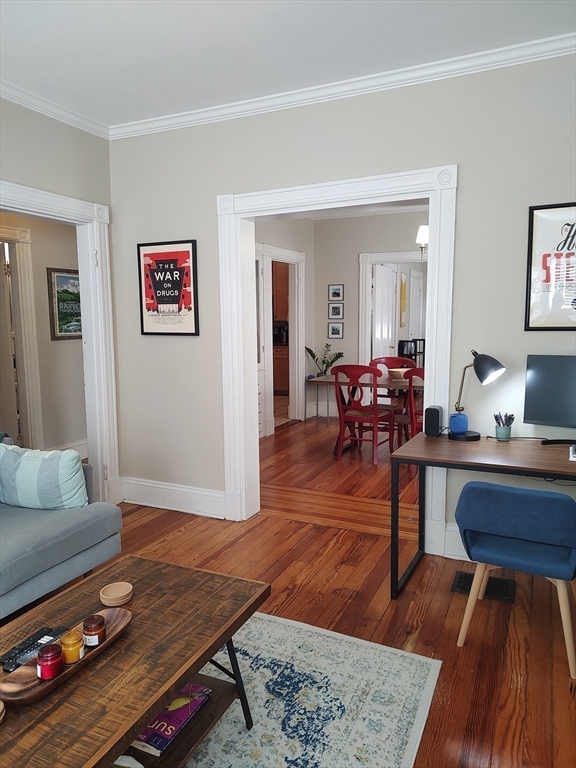 Sweet one bedroom available in the coveted Agassiz neighborhood! Sunny and large unit with separate living room and dining room with lovely built-in china hutch. Charming period details and crown moldings blend with tasteful unit updates. Lovely hardwood floors, tall ceilings and large windows bring warmth and character to this home. The bedroom has two spacious closets and overlooks the leafy side and back yard. Updated kitchen fully appointed with granite countertops, all stainless steel appliances including a gas cook stove, dishwasher, microwave, refrigerator along with a bonus pantry with plenty of storage! Convenient in-unit washer and dryer, too! Enjoy the lovely outdoors on the shared patio or stroll the friendly neighborhood just steps to groceries, restaurants, boutiques and all that Harvard and Porter Squares have to offer! Flexible lease start/end date (10 or 22 mo. lease offering to stay on the academic calendar). Excellent credit and references; no pets/smoking.