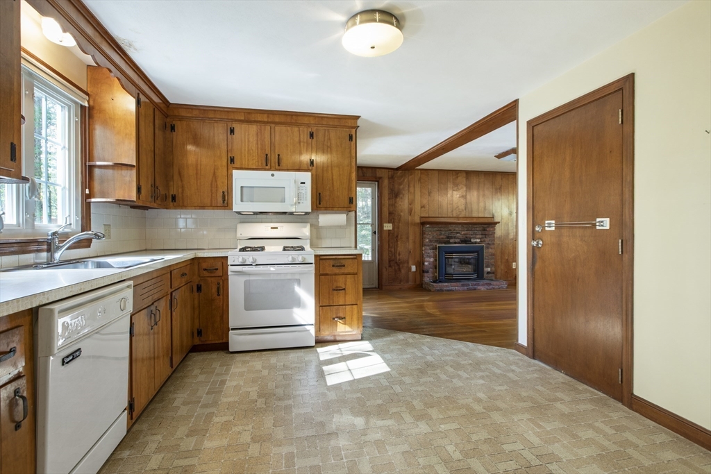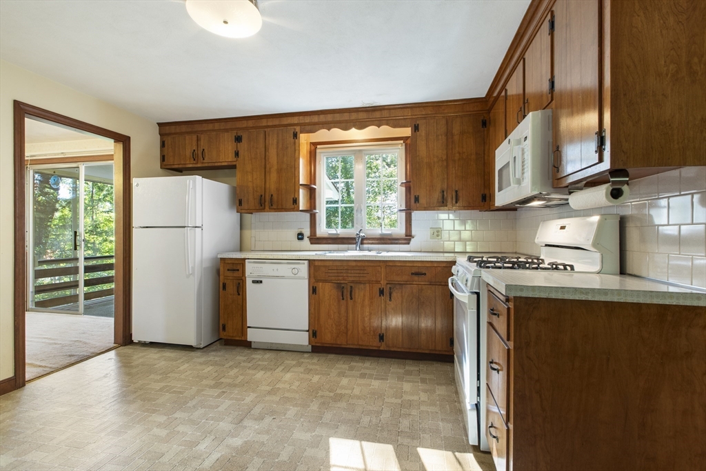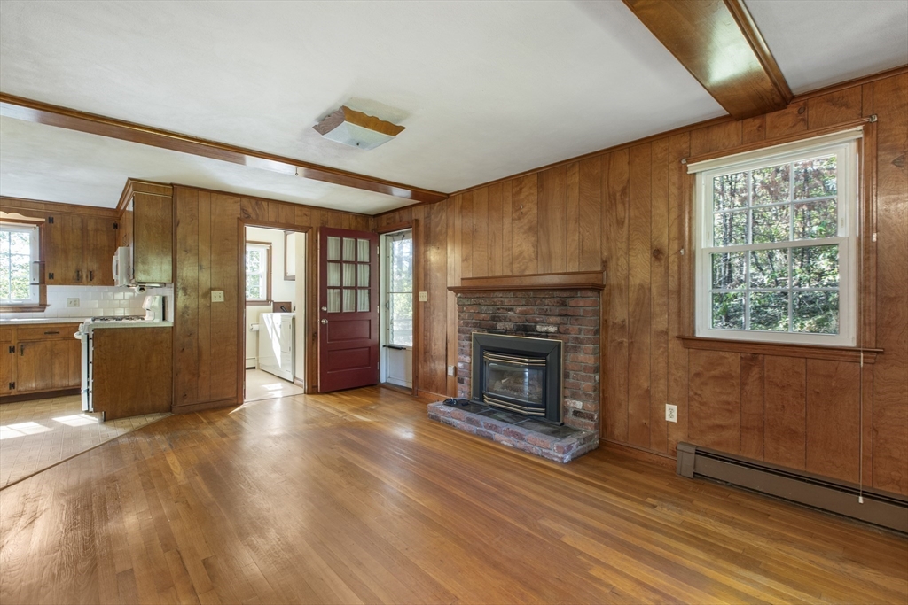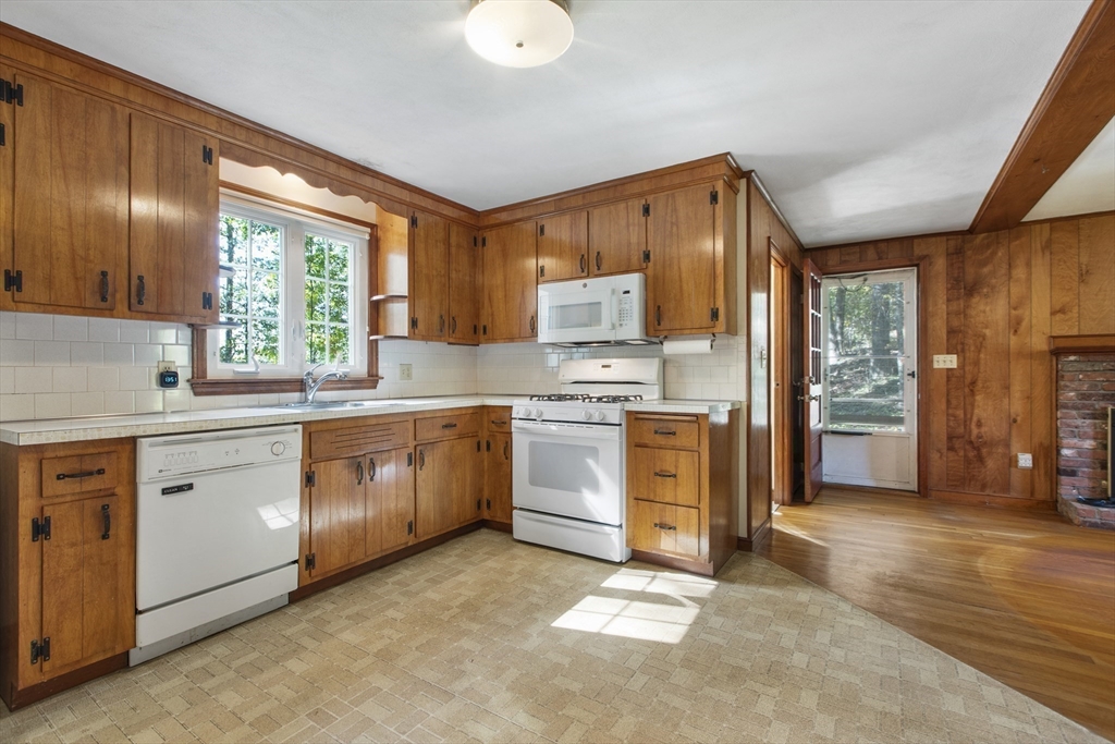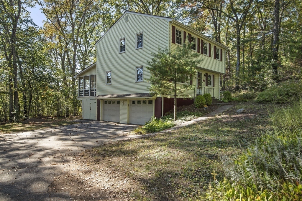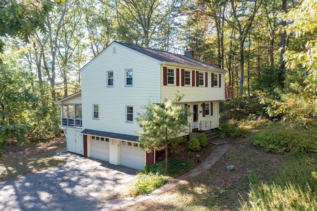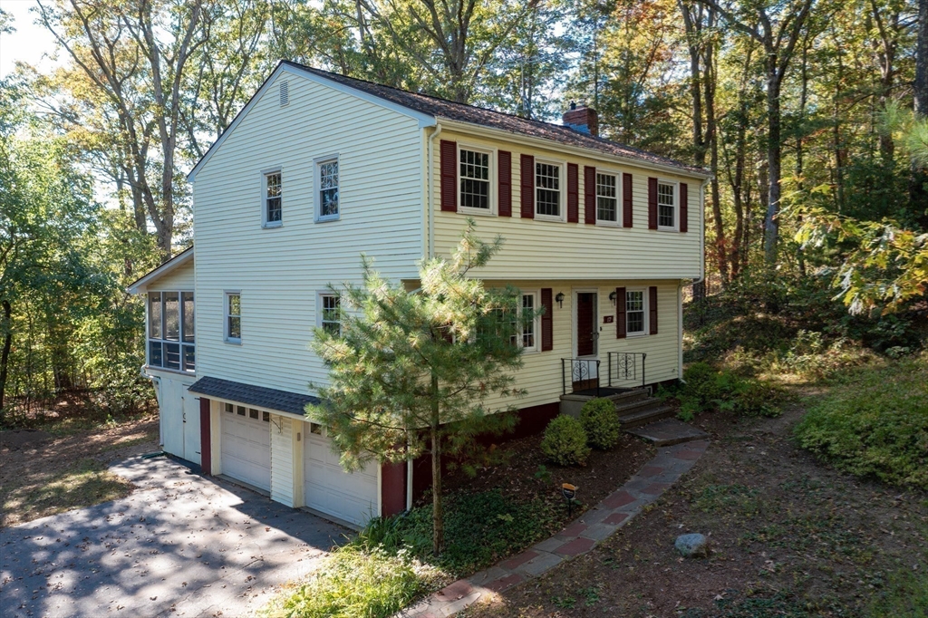 Welcome Home to this traditional 8 room, 4 bedroom, 1.5 bath Colonial lovingly maintained by the original owner. The warm and inviting family room features a gas fireplace, perfect for cozy gatherings. Enjoy the convenience of natural gas cooking and heating, a first floor laundry room, and a two car garage with electric doors and keyless entry. The heating system was updated in 2015, and the kitchen refrigerator, washer, and dryer are included in the sale. Relax on the screened-in porch overlooking the picturesque wooded lot along a scenic country road. Recent connection to town sewer for added convenience. Bring your decorating ideas and make this well-cared-for home your own! Excellent commuter location and top-rated schools complete the package.