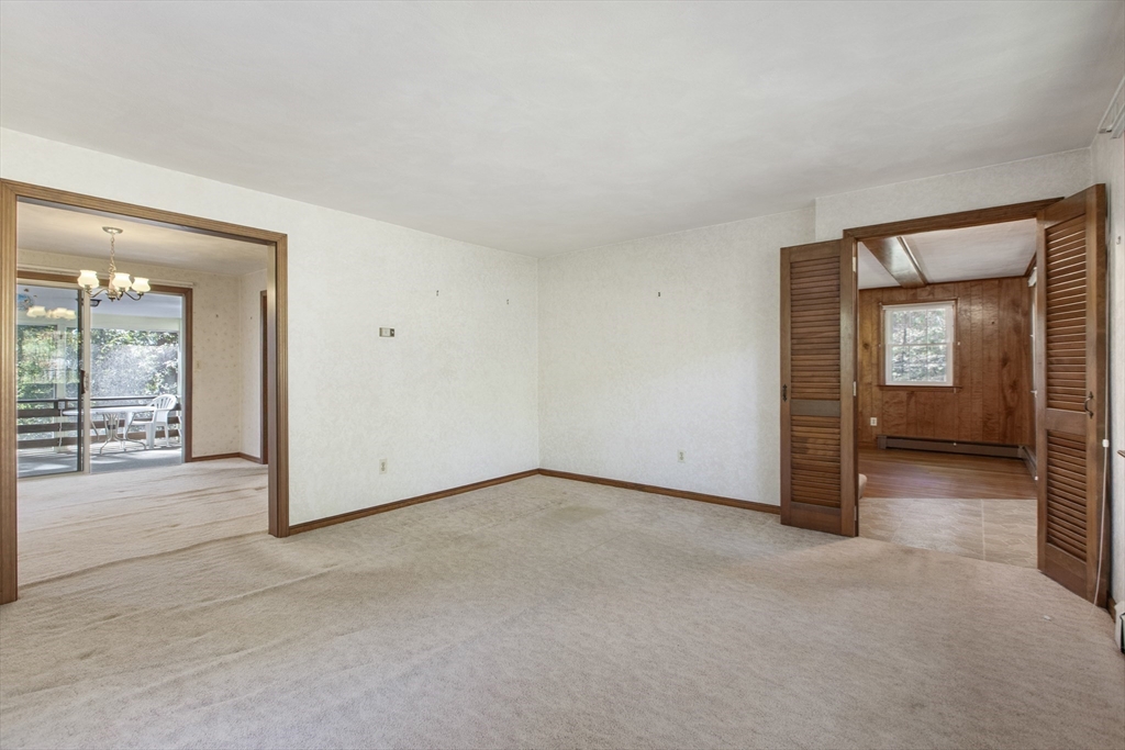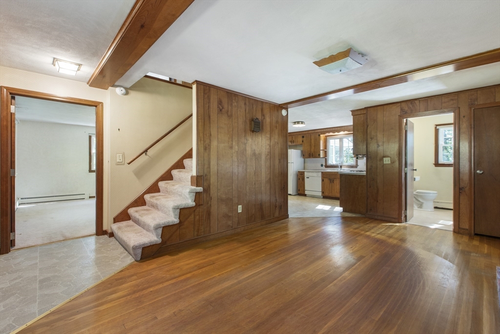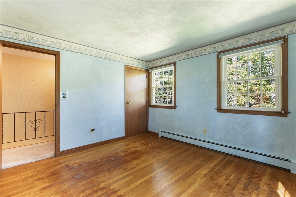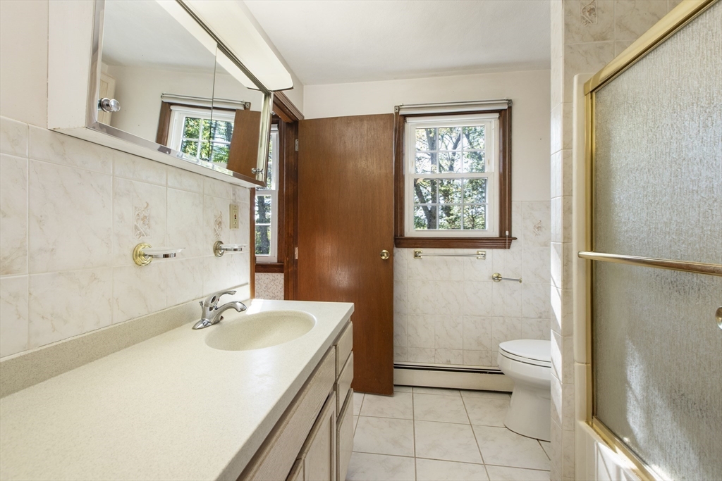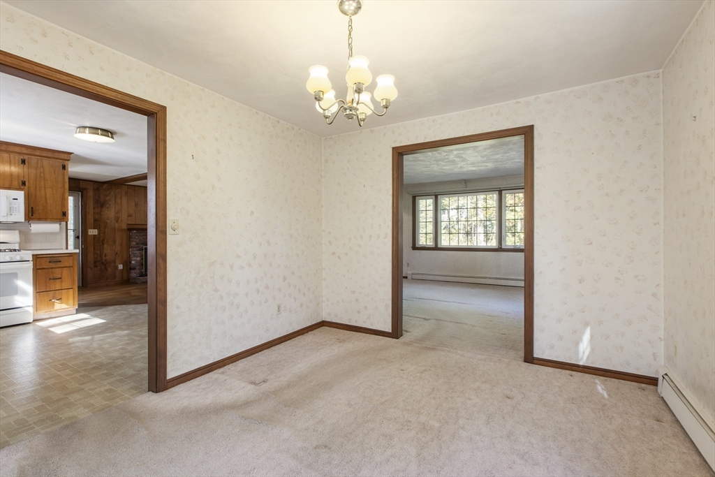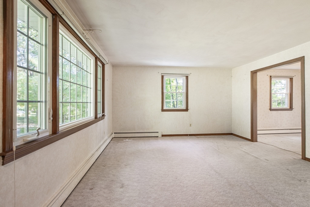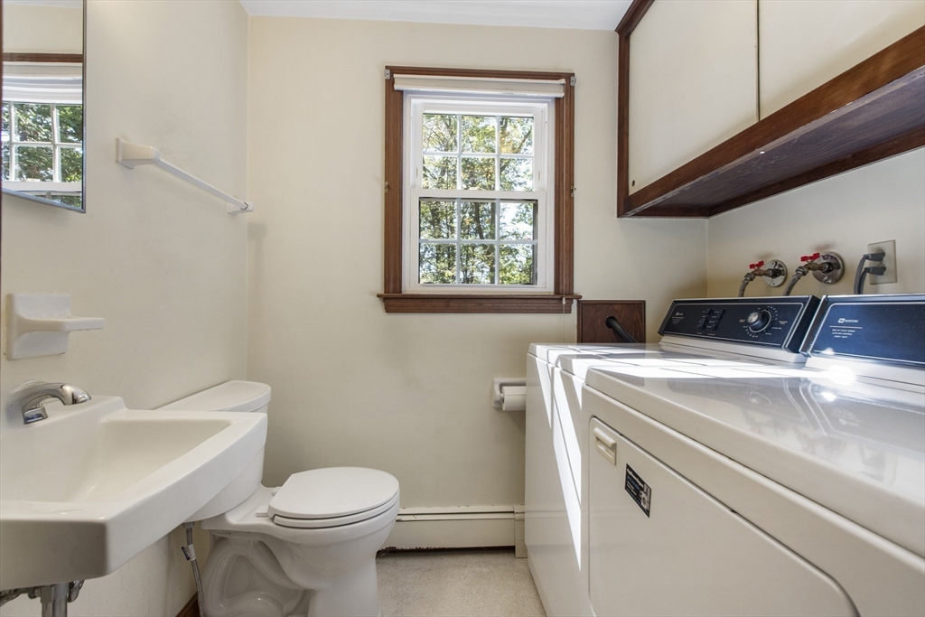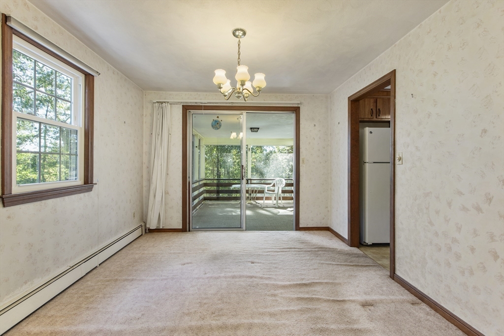 Welcome Home to this traditional 8 room, 4 bedroom, 1.5 bath Colonial lovingly maintained by the original owner. The warm and inviting family room features a gas fireplace, perfect for cozy gatherings. Enjoy the convenience of natural gas cooking and heating, a first floor laundry room, and a two car garage with electric doors and keyless entry. The heating system was updated in 2015, and the kitchen refrigerator, washer, and dryer are included in the sale. Relax on the screened-in porch overlooking the picturesque wooded lot along a scenic country road. Recent connection to town sewer for added convenience. Bring your decorating ideas and make this well-cared-for home your own! Excellent commuter location and top-rated schools complete the package.