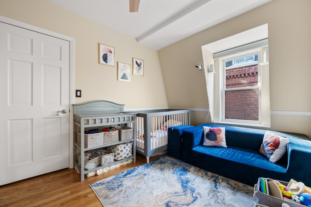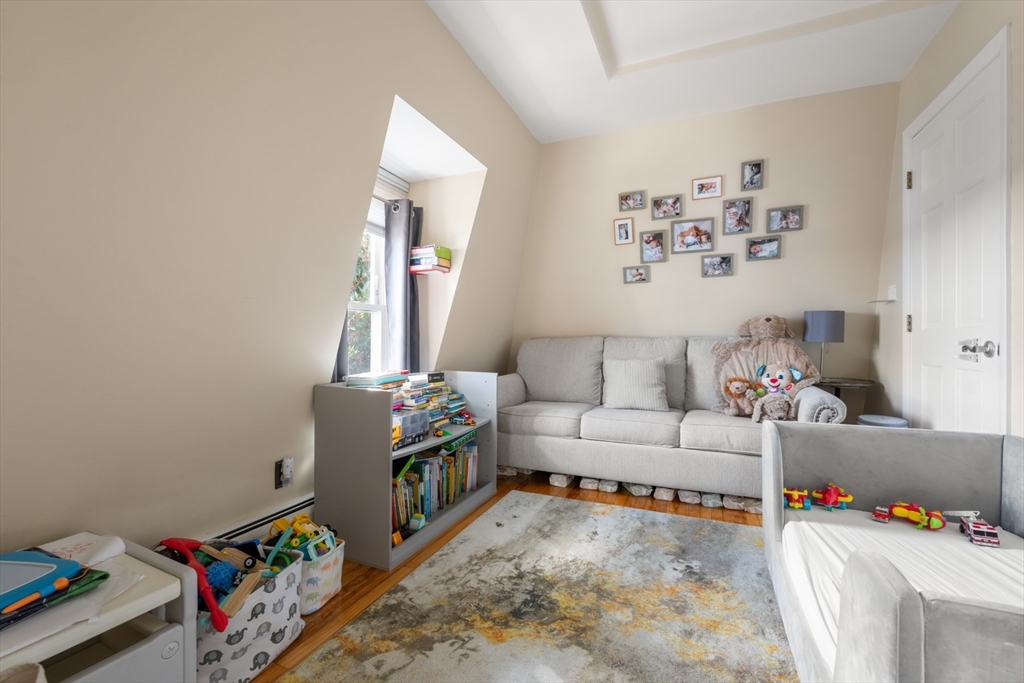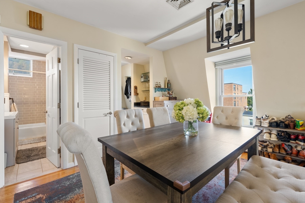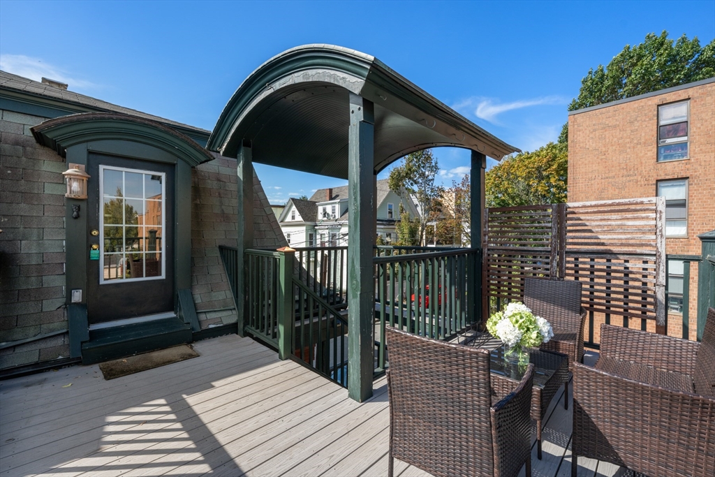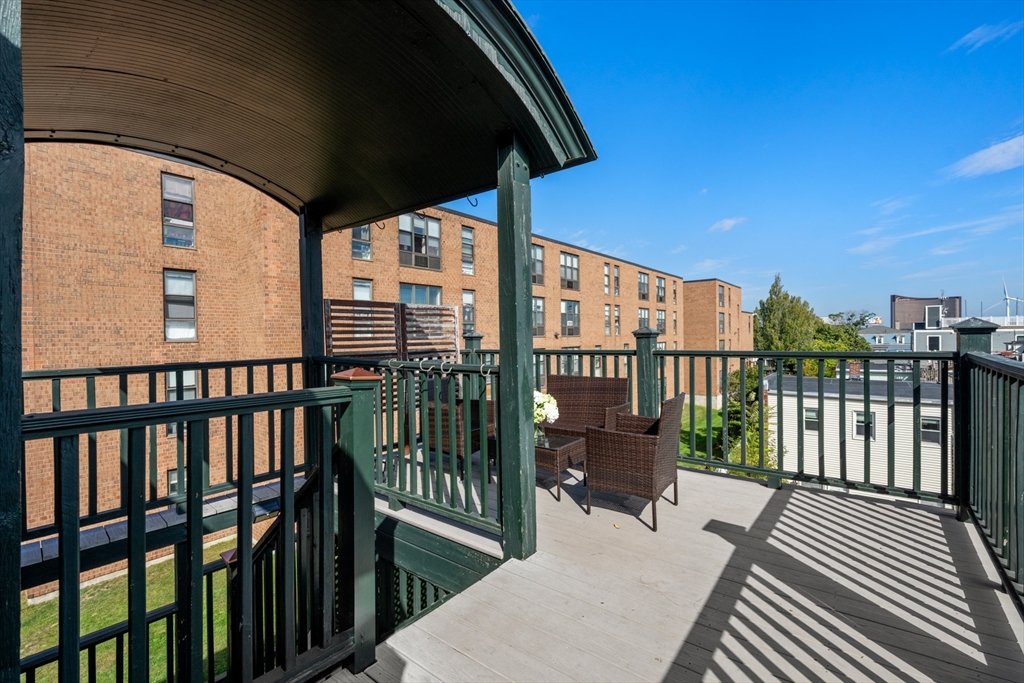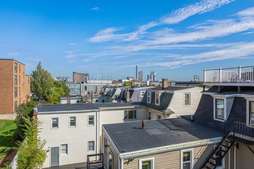 Sun-filled top-floor 3-bedroom unit in a charming Victorian brownstone! Features an updated bathroom, in-unit laundry, modern hardwood floors, stainless steel appliances, and granite countertops. The open layout flows to a private deck off the kitchen, perfect for relaxing or entertaining. Enjoy one driveway parking space, basement storage, and recent upgrades including new insulation, central A/C, and ceiling fans. Ideally located near Sullivan Square T-stop, bus lines, Route 93, and the shops and restaurants of Assembly Square. Exclusive roof deck rights add extra appeal.Unit and common areas have been deleaded A rare combination of classic charm, thoughtful updates, and unbeatable location.