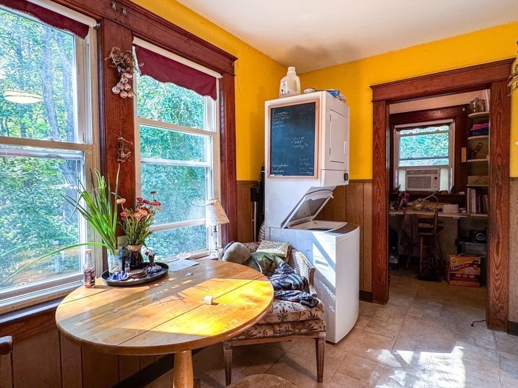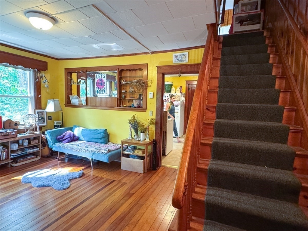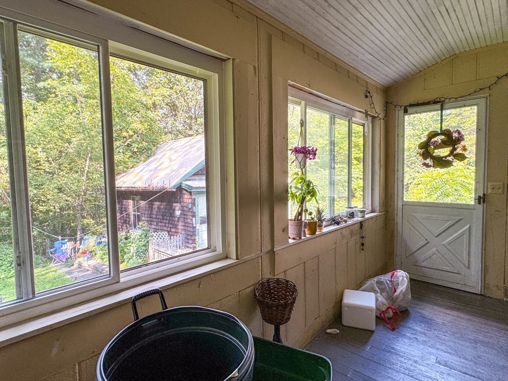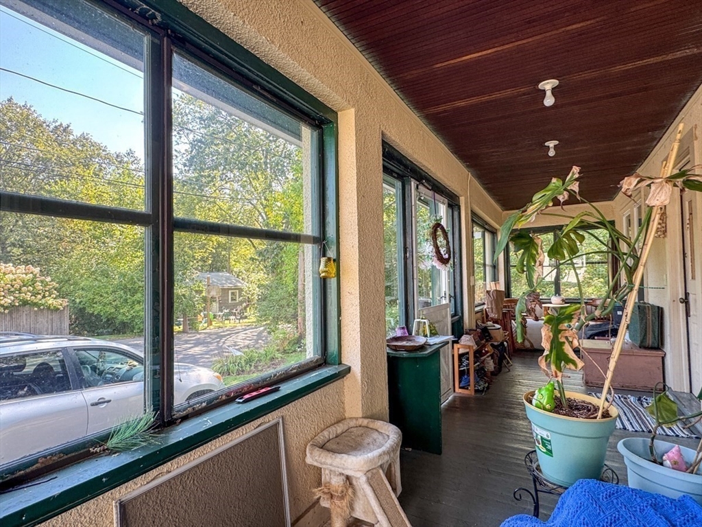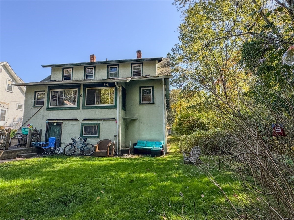 Side-by-side duplex set on a low-traveled, dead-end road, conveniently located just minutes to town and I-91, with a stucco exterior and two enclosed porches, one in the front and one on the back. Both units mirror images, with a living room, a kitchen with a pantry, and access to both porches on the first floor. Two bedrooms and a bath on the second floor. Individual basements with updated natural gas heating systems and water heaters. Wood floors, natural woodwork, and vinyl windows. Garage for storage and a nice-sized private backyard.