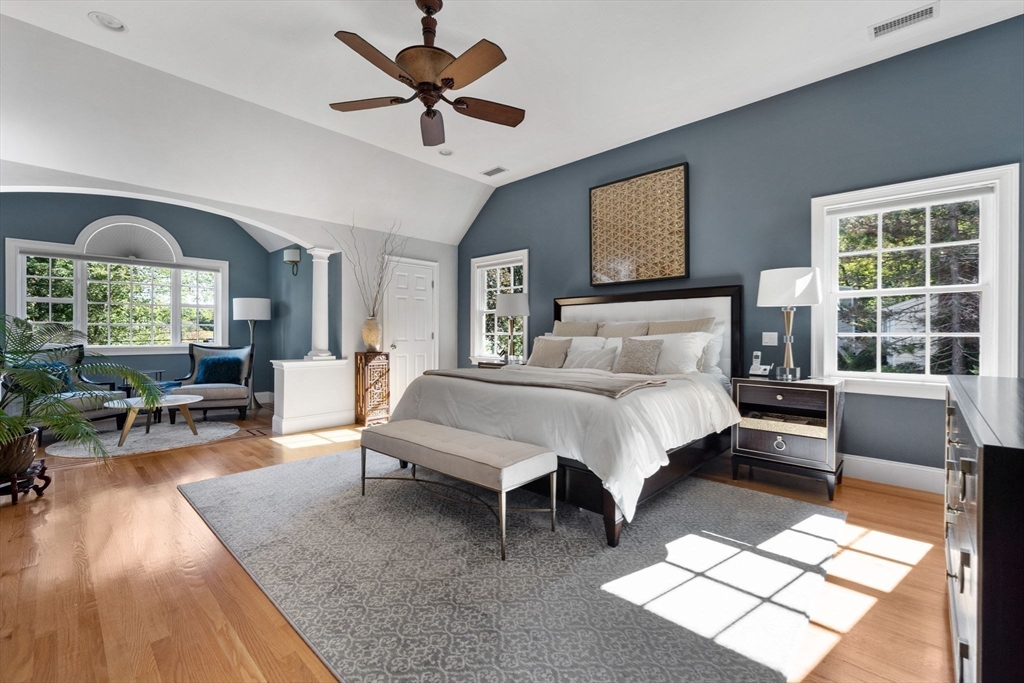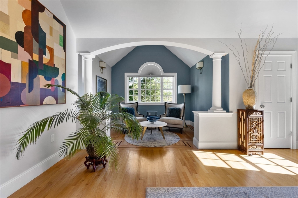 Welcome to this impeccably maintained colonial blending elegance, craftsmanship, and convenience. Ideally located near Lexington’s top-rated schools, Lincoln Fields, walking trails, historic center, and major highways.The first floor offers a chef’s dream kitchen with commercial-grade appliances and an open layout flowing into the dining area, wet bar, and family room—perfect for entertaining. Step outside to enjoy a patio for dining, gazebo retreat, fire pit, and serene water fountain overlooking a beautifully terraced 1.6-acre backyard with four-season views. A first-floor ensuite bedroom (or office), plus formal living and dining rooms, add versatility.Upstairs features a spacious primary suite with walk-in closet and bath, three additional bedrooms, two full baths, and a laundry room. The third floor offers a large, flexible space with full bath—ideal for a playroom or guest suite. The unfinished, plumbed basement provides endless potential.Don’t miss this exceptional home!
