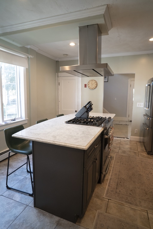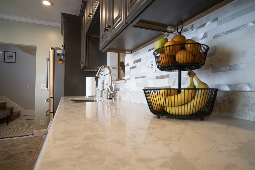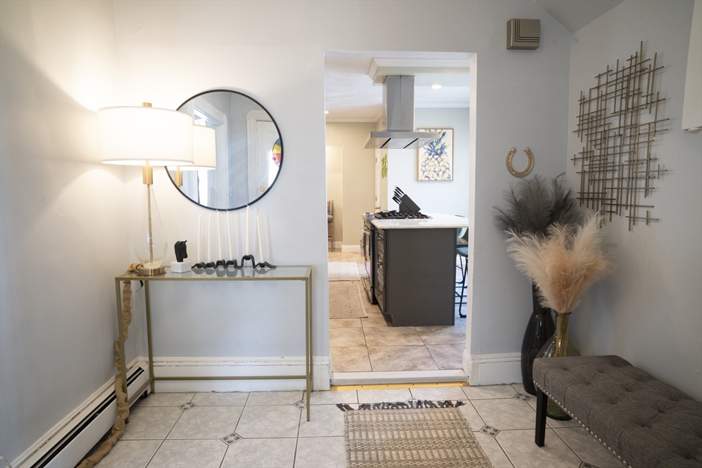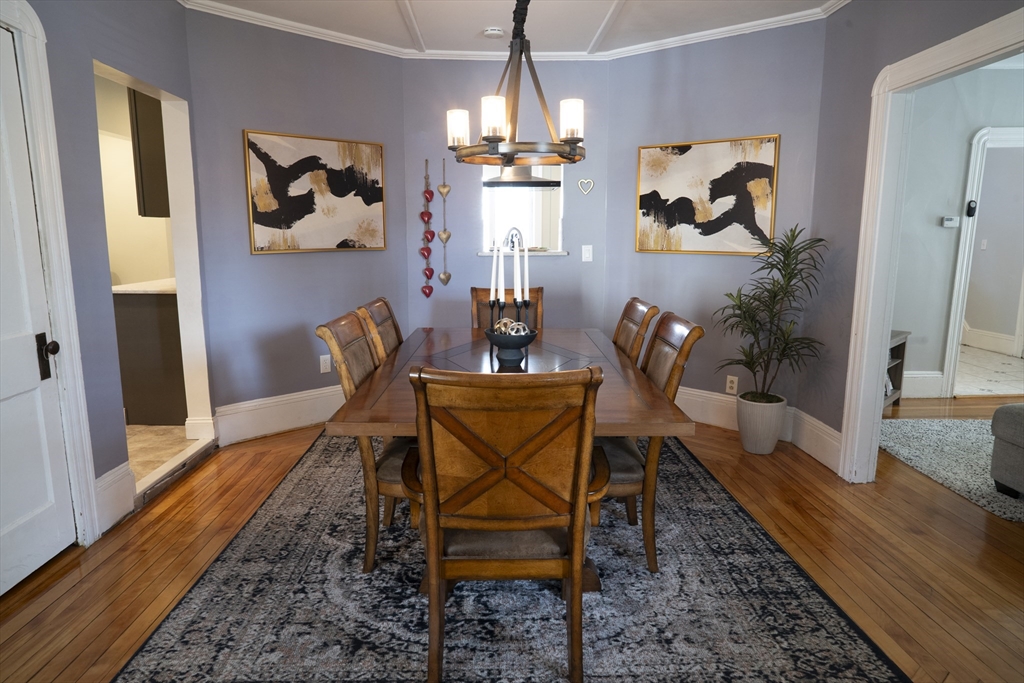 Welcome to a beautifully well maintained 5 bedroom, 3.5 bath and a 2 car detached garage colonial nestled on a quiet dead-end street situated in Lynn, MA within the Greater Boston urban area. This charming home features hardwood floors, and the kitchen stands as a culinary centerpiece, featuring a kitchen bar and a large kitchen island, perfect for both everyday meals and entertaining. An island range hood adds a touch of modern sophistication, while the crown molding echoes the home's classic heritage. Stone countertops provide a durable and elegant workspace, complemented by a stylish backsplash and high-end appliances. Outside, enjoy a private fenced-in yard with a patio, perfect for entertaining, relaxing, or gardening. Additional highlights includes an in-law style bedroom with full bath in the first floor. Don't miss the opportunity to own a unique piece of history in great condition.