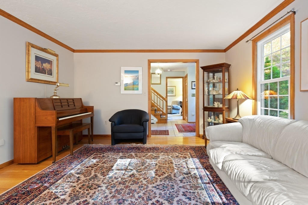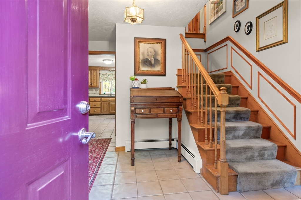 Experience Country Living in charming Norfolk. Well maintained, spacious and comfortable colonial surrounded by a partially wooded lot, with an open, flat backyard. A welcoming foyer and open staircase greet you. As the days grow shorter cozy up in the fireplaced family room, or host gatherings in the formal living room and dining room, with bay window overlooking the yard. The large, cabinet-filled kitchen boasts granite counters, stainless steel appliances and an eating area that opens to a screened porch - ideal for enjoying quiet mornings or evening breezes. half bath and laundry room complete the first floor. On the second floor, discover a front to back main bedroom, with walk in closet and bath with skylight. There are also 3 additional generous sized bedrooms and another full bath. The two car garage has plenty of extra space for storage. This fabulous home is handy to shopping, including Patriot Place and Wrentham outlets, commuter rail stop, and highway access.