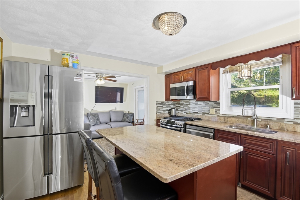 Discover the inviting residence located in the lovely and convenient neighborhood of Hyde Park . The home boasts approx. 1900sq ft of living space. The kitchen presents an open invitation to culinary exploration, featuring a large kitchen island perfect for both preparation and casual dining, stone counter-tops offering durability and elegance, shaker cabinets providing ample storage, and a stylish back splash all creating an inspiring area for memorable meals. In one of the three spacious bedrooms, a skylight introduces natural light that warms the space.The home offers 2 full baths and one half bath. The property features an open floor plan, ideal for both entertaining anmd everyday living. Stepping outdoors, a deck provides a private space for relaxation and enjoyment of the surrounding environment. The finished basement offers great ADU potential by right in the city of Boston. Newer solar has added benefit of cost savings and energy efficiency. First showing 10/12/25 11:30am - 1p