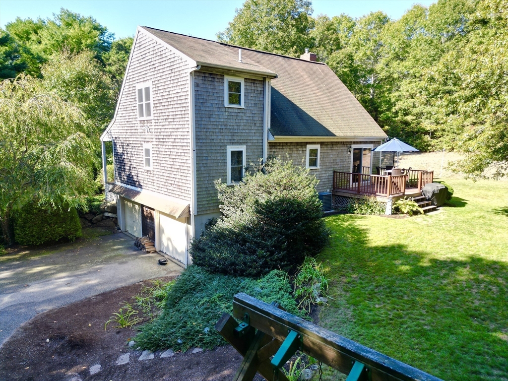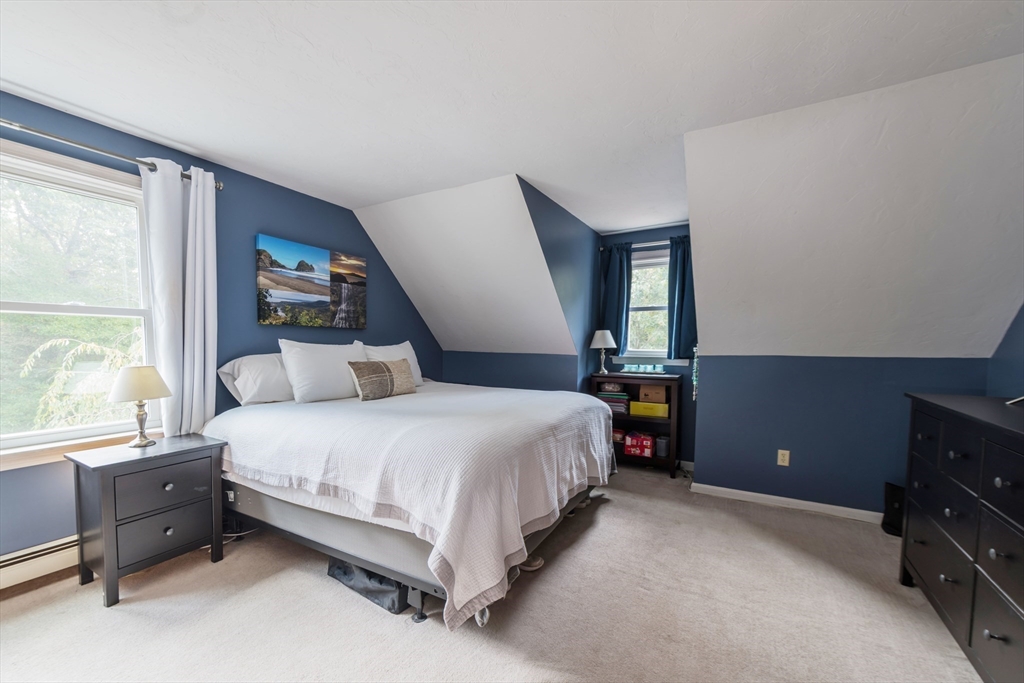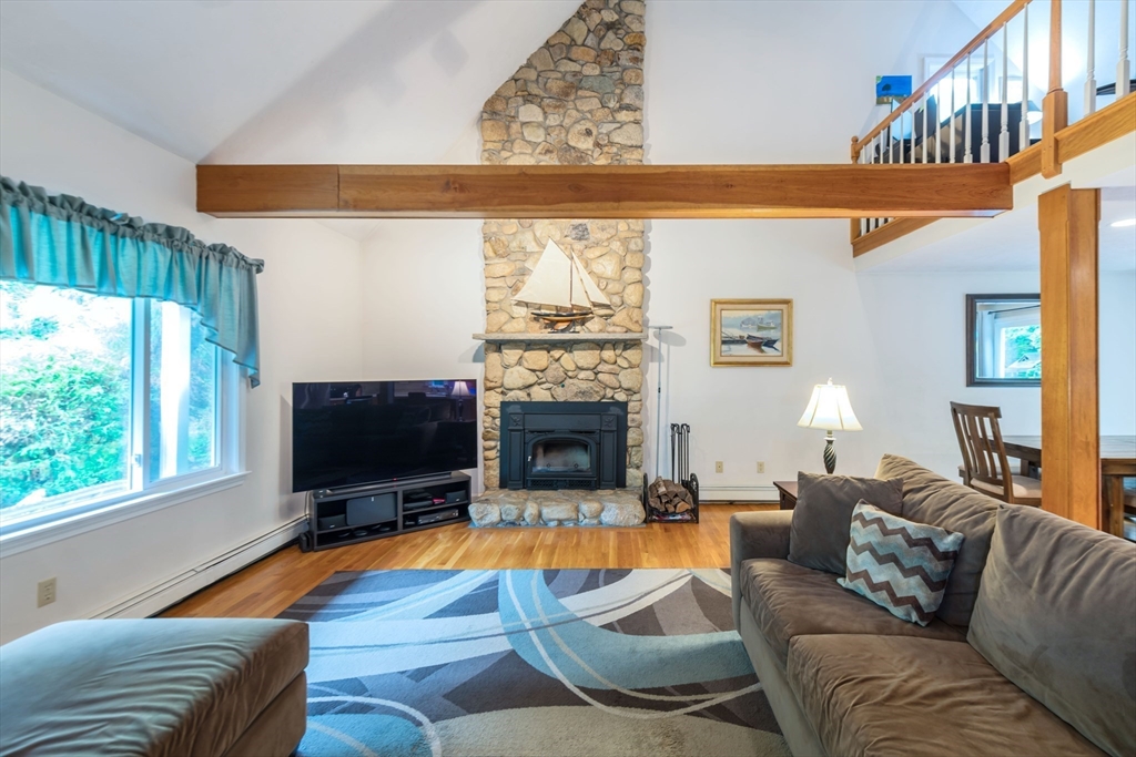 **OFFER DEADLINE - Tuesday, 10/14 at 6pm**. Please make offers good until Thursday, 10/16 at 12pm. This charming 3 bedroom, 2 bath home is nestled in a sought-after neighborhood & is set on 1.43 acres of land. Enjoy your morning coffee on your beautiful mahogany farmers porch overlooking your private, spacious and wooded yard. The first floor boasts an open floor plan with vaulted ceilings, wooden beams and the floor-to-ceiling fireplace with a wood burning stove. Enjoy gatherings centered around the kitchen island and dinners in the spacious dining area. The backyard is perfect for entertaining with a mahogany deck, patio & fire pit. The 1st floor has two bedrooms & a full bath. The 2nd floor loft is perfect for an extra living space, home office or crafting space. The spacious primary bedroom has a large walk-in closet & full ensuite bathroom with a jacuzzi tub & shower. The large finished basement offers the opportunity for a great flex area! Don't miss this opportunity!