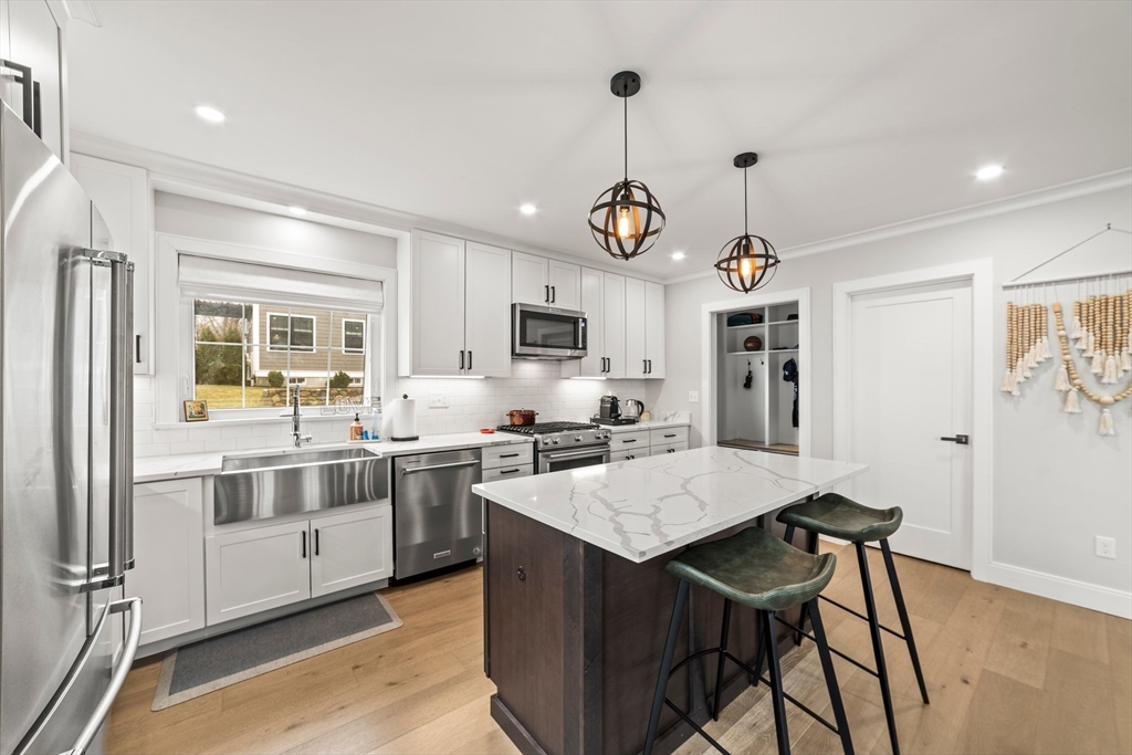Conveniently located near downtown Hyde Park, the Fairmount Line, and the Orange Line, this 2020-built townhouse in the desirable Fairmount neighborhood offers 3 levels of stylish living with easy access to public transit—just 34 minutes to South Station and 41 to Longwood (per Google Maps). The first floor features an open-concept living area with space for dining and a mounted TV, plus a mudroom. The kitchen boasts quartz countertops, stainless steel KitchenAid appliances, a gas stove, and an island. A half bath and pantry complete the level. Upstairs, the primary suite includes two closets and a spa-like bath with double vanity and walk-in shower. Two additional bedrooms and a full bath with tub/shower complete this floor. The top level offers a bonus room perfect for an office, gym, or playroom, plus extra storage. Enjoy two-car assigned parking, a private patio, and access to a shared yard. In unit laundry and central AC complete the package. Availble Nov 15th.