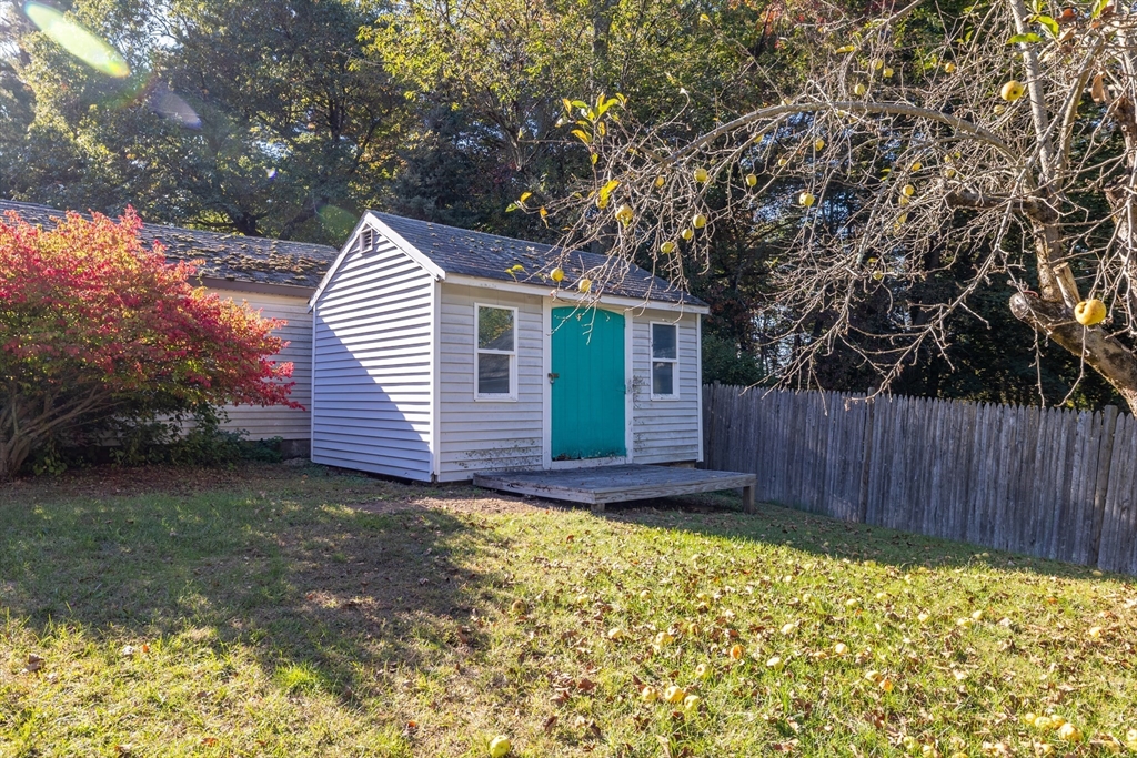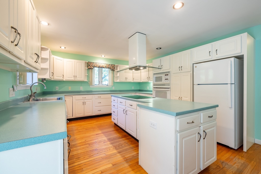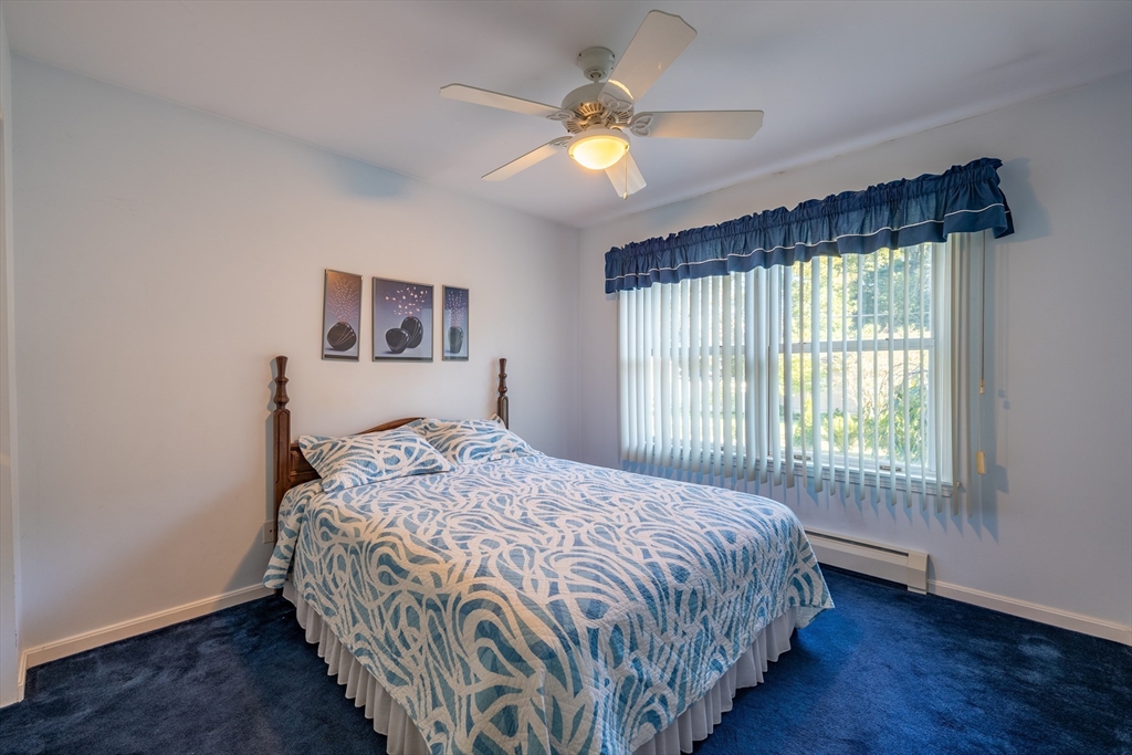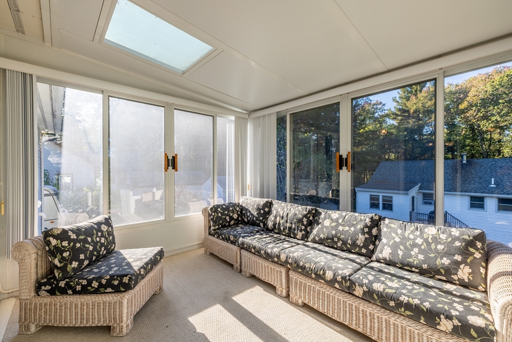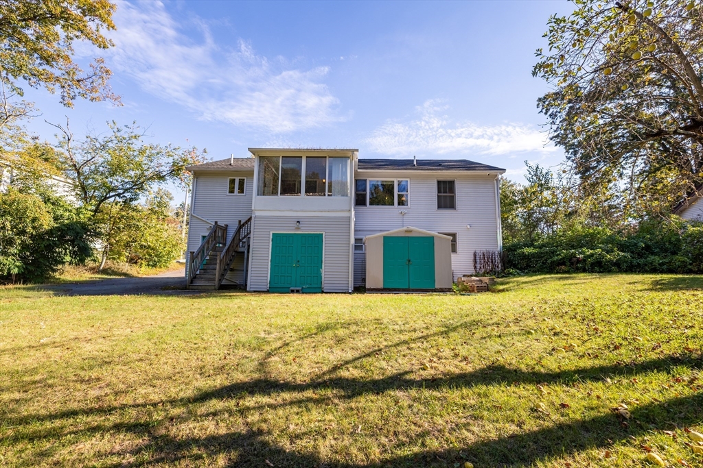 CHARMING & INVITING RAISED RANCH IN A DESIRABLE NORTH READING NEIGHBORHOOD! This 3-bedroom, 2.5-bath home offers comfortable living with a bright and inviting layout. The open-concept living and dining area features hardwood floors, a large picture window, and sliders leading to an enclosed porch perfect for relaxing or entertaining. The kitchen boasts hardwood flooring, recessed lighting, and a center island—ideal for everyday living. The spacious primary suite includes hardwood floors, a walk-in closet, and a private full bath. The finished lower level provides a flexible bonus room and an additional bedroom—perfect for guests, a home office, or a playroom. Enjoy the outdoors from the enclosed porch overlooking a lovely yard with a fruit tree and storage sheds. With an attached 2-car garage and convenient access to shopping and public transportation, this home is ready for its new homeowner. DON’T MISS YOUR OPPORTUNITY TO OWN THIS WONDERFUL NORTH READING HOME!