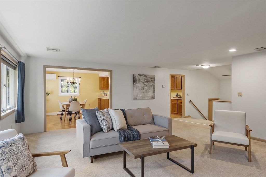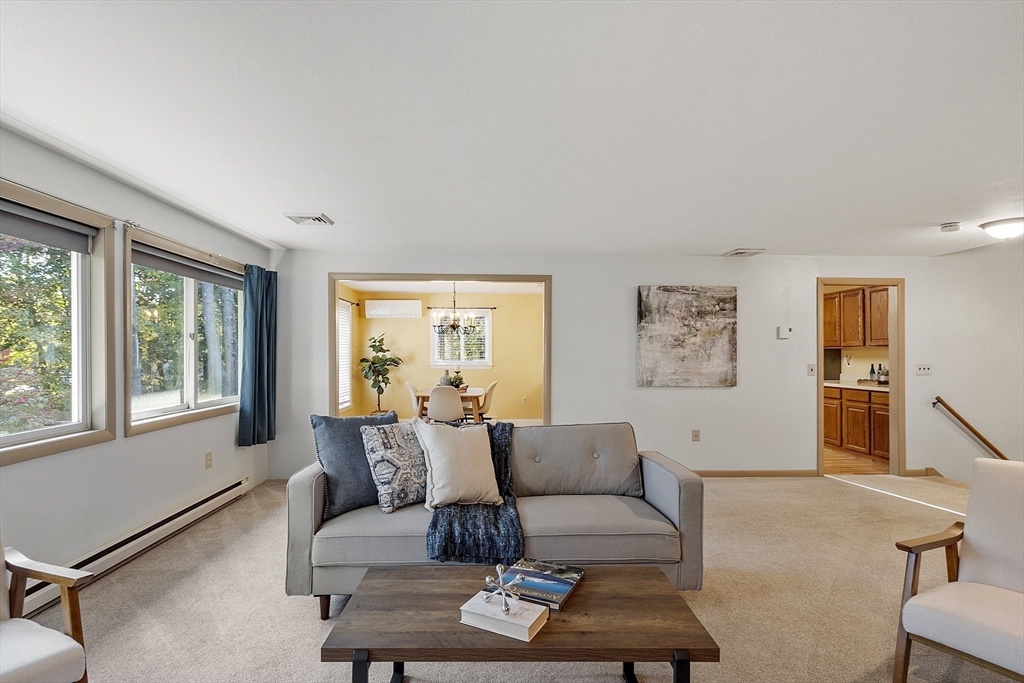 45 Meetinghouse Hill Road has an attractive contemporary layout in a private setting, and is ready for you to move right in! You’ll love the natural light and warmth of passive solar and so many south-facing windows! Open kitchen and dining, XL living room, 1/2 bath, laundry and covered deck on the main level. A second level separates 3 bedrooms and 2 full baths, including a private main suite with a walk-in closet and full bath. Another section of this unique home has 2 large rooms, one with a walkout to the fenced back yard. Mini-splits and 2024 heating and A/C system, new oversized slider and recent appliances. 2 car garage, piping in place for a future pellet stove in the lower level, plenty of parking and a partially fenced, private backyard. Sterling town center is nearby with shops, restaurants and a bustling Main Street! Nice location within the Wachusett Regional School District, with easy commute times to Routes 2, 190 and 495. Stop in at the open houses this weekend!