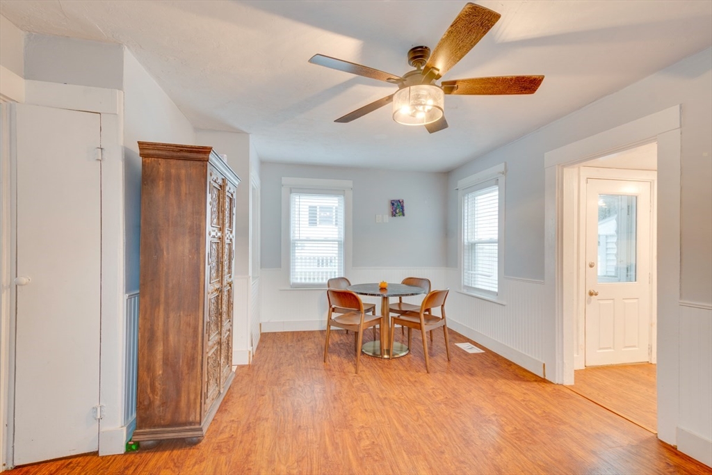 Welcome to 277 Prospect Street in Norwood, MA – a thoughtfully updated and well-maintained home offering comfort, style, and convenience. The refreshed kitchen features stainless steel appliances, updated countertops, classic cabinetry, and a subway tile backsplash, with easy access to a fenced-in, level yard complete with a deck and storage shed. The elegant dining room includes built-in shelving and space for a sitting area, while the spacious front living room leads to a stylish wood staircase. Upstairs, two bright and generously sized bedrooms are complemented by a renovated full bath with a tiled shower and modern square sink. A convenient half bath with stackable laundry is located on the first floor. Additional highlights include gas heat, a tankless hot water heater, central air on the main level, and mini-split systems upstairs. Located near local schools, Norwood Center, and the commuter rail, this home offers the perfect blend of modern living and prime location.