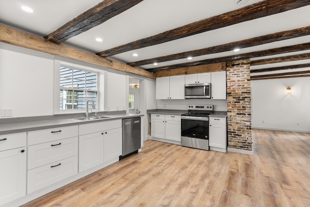 Fully remodeled Granville farmhouse delivers 1,280 sq ft of warm, country-chic living with 2 bedrooms and 1 bath. Inside, the open-concept layout features beamed ceilings, LVP (luxury vinyl plank) flooring, and a modern kitchen adorned with stainless steel appliances. A gorgeous location resting on 0.75 acres of gentle sloping lot space providing scenic mountain views with lush surroundings. Other updates include fresh systems and modern finishes that enhance comfort and style. A partially finished upper level expanding living options and an attached, oversized garage. Tucked in a peaceful countryside setting, this farmhouse blends character, modern amenities, and nature in a beautifully reimagined package. Some images digitally altered for inspiration; Showings begin Saturday 10/18 from 10-12 noon!