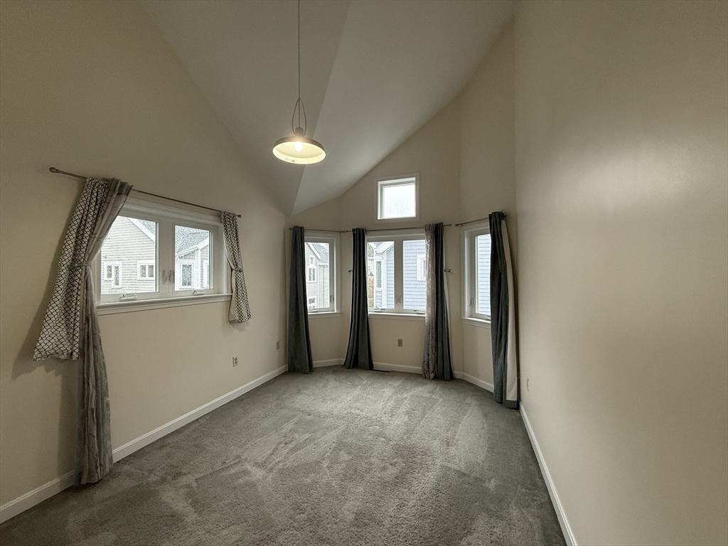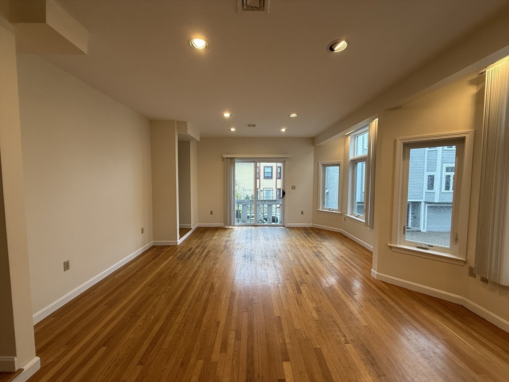 Steps away from Central Square and the Red Line, this quiet and spacious 2–3 bed, 2 full and 2 half bath townhouse is tucked away on a private way in Rollins Court. Freshly painted and move-in ready, it offers three levels of living. The first floor can be used as a bedroom, guest space, or office with direct access to a large private patio. The second floor is filled with natural light and features an open floor plan with dining area, deck, and a living room with a wood-burning fireplace. The third floor offers two sun-filled bedrooms with cathedral ceilings, each with its own full bath. The primary suite includes double closets. Additional highlights include central air and in-unit washer and dryer, and 1 attached garage parking spot. Close to shops, dining, and public transit, this home blends comfort, convenience, and city living.