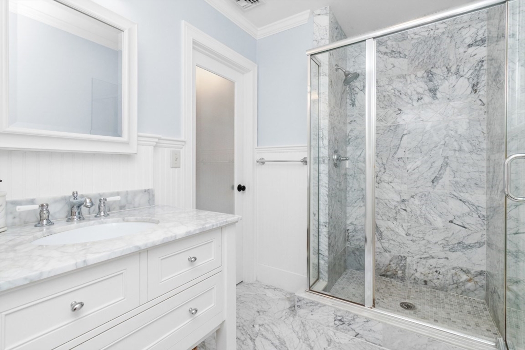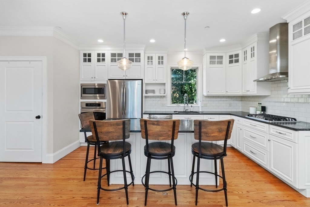 Exceptional and impeccably maintained townhouse with an open concept main level & built for everyday living and entertaining. The spacioous kitchen features a center island, high ceilings, beautiful cabinetry, laundry, & hardwood floors. The living room is accented with high end finishes, crown molding, wainscotting, gas fireplace & plantation shutters. The primary suite boasts a marble bathroom & opens to a private outdoor deck, great for relaxing with your morning coffee, or after a long day. There are two additional bedrooms & a marble bathroom. The home office is a bonus to potentially convert into a fourth bedroom. Updates in 2021 include freshly painted interior, kitchen with new sink, countertops, & disposal. New light fixtures, recessed lights & new carpeting are also additional updates. Rarely available 2-car garage with storage.Conveniently located in Needham Heights near restaurants, shops, and commuter rail. Welcome Home!
