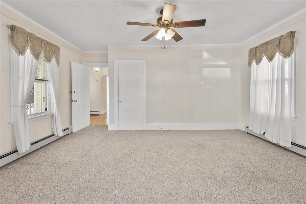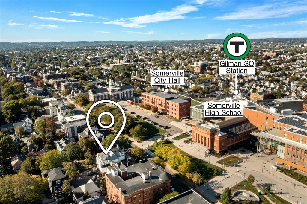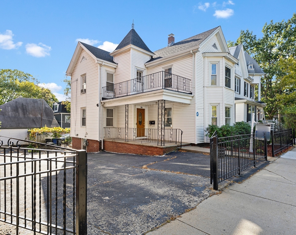 DELIVERED VACANT... DELEADED TURRETED VICTORIAN TWO FAMILY w/ bsmnt in law. UNDER A 5 MINUTE WALK TO GREEN LINE. Huge driveway can fit up to six cars. Basement has finished in law (not considered in room count/ not considered a legal unit). Full Walk Up to Attic. New Architectural Shingle Roof as of 2018. DELEADED in 1991 with Certificate. New Hot Water Heater in 2022. New Washer/Dryer in 2023. Overall very solid well kept home. Hardwood floors under the wall to wall carpeting. Large Bay Window living rooms. Large yard area with charming old school grape arbor. Full size basement windows. FANTASTIC LOCATION...TEN MINUTE WALK TO UNION SQ and literally around the corner from the Gilman Sq Greenline. Directly across from the City Hall Concourse which also is home to the Somerville Public Library and the NEW Somerville High School. Rated a WALKER'S PARADISE WALK SCORE OF 92, a RIDER'S PARADISE SCORE OF 90 with World Class Transportation and a BIKER'S PARADISE SCORE OF 93!