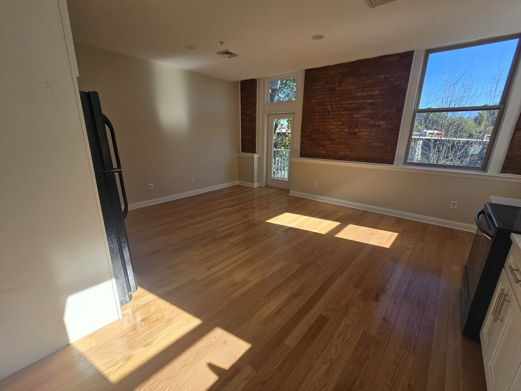 2 Bedroom sun-splashed unit in brick elevator served waterfront building. Fantastic water views from your private balcony overlooking the river. Lots of charm with Exposed brick, gleaming hardwood floors throughout. Open concept kitchen/ Living room, Updated eat in kitchen with new granite countertops. Fresh paint and updated tiled bath. Central A.C, Full size laundry in unit. Whole building was gut renovated with updated electrical, roof, plumbing, heating etc within last 15~ years. 1 assigned parking space on-site. Pet friendly association. Storage in basement. Located within walking distance (5 minutes) of Downtown Haverhill, close to the Train Station and Passaqua Playground Park. Lots of restaurants and dining spots close by.