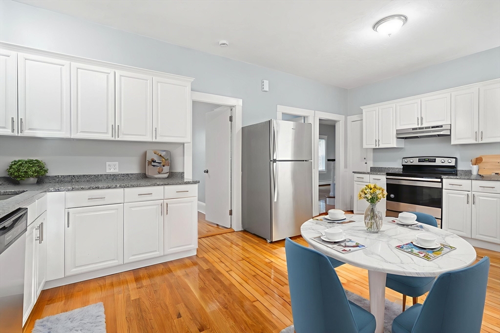 OUTSTANDING 5 bedroom single family on a quiet side street with 2 full bathrooms and a spacious 2 car garage. Both with power door openers and spacious yard. Enormous composite deck and enclosed porch! This beautifully renovated home is freshly painted from top to bottom and has a brand new roof and windows! Be the first one to make this YOUR NEW HOME after it has been tastefully renovated throughout! Updated GAS heat and hot water, updated electrical, and more! HUGE basement providing tons of extra space and a yard that family's will LOVE! Right near the AVON line in North side of town! Easy access to commuter rail, buses, route 24, shopping, and restaurants. Applications will be available at the open house this coming Thursday October 16th from 5 - 6 PM. JUST SHOW UP!