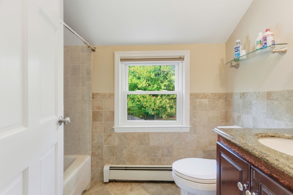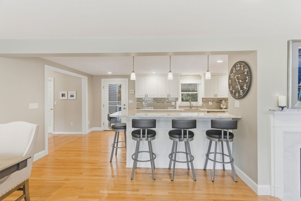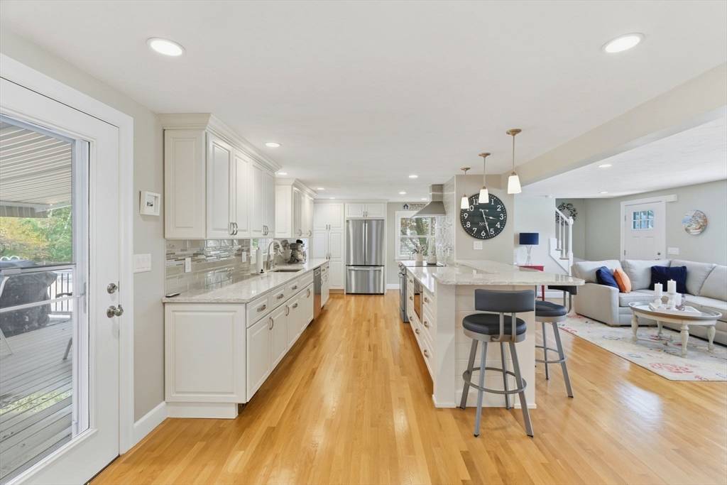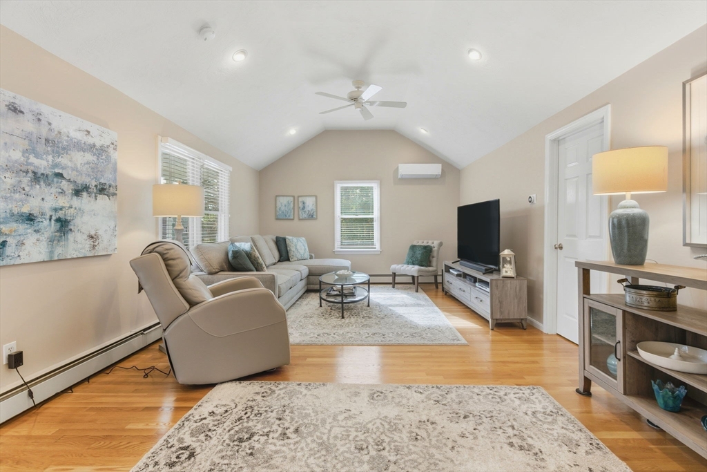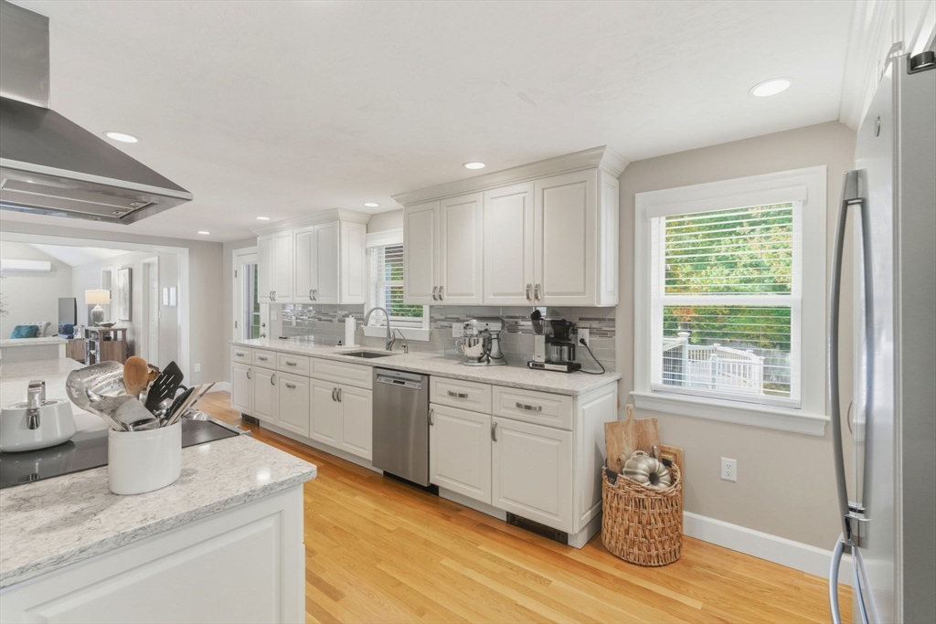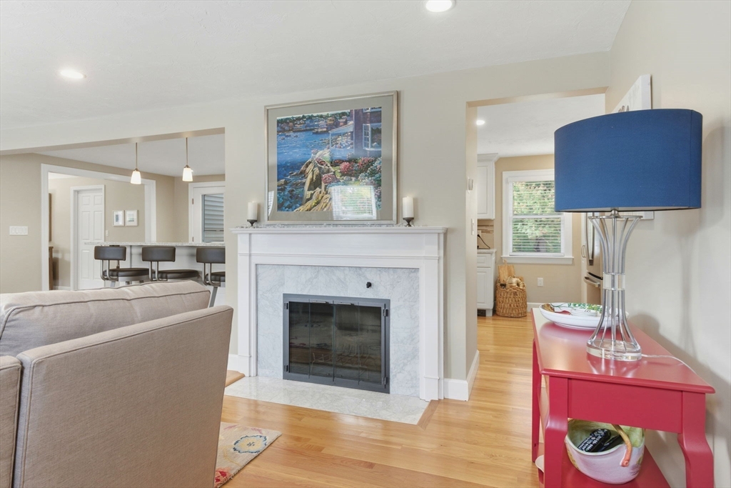 Welcome home to this beautifully renovated and meticulously maintained gem! Step onto the welcoming farmer's porch and enter through the mudroom into a spacious family room featuring a tray ceiling and gleaming hardwood floors. The first-floor bedroom offers privacy and convenience with direct access to a stunning main bath complete with a Jacuzzi tub, separate shower, and laundry. The gourmet kitchen is a chef’s dream, showcasing high-end Bosch appliances, sleek quartz countertops, stylish pendant lighting, and dining area—perfect for entertaining. Enjoy the inviting living room with its elegant fireplace. Upstairs, you'll find three generously sized bedrooms and a fully updated bath. The finished basement adds versatile living space. Stay comfortable year-round with energy-efficient mini splits, and step outside to unwind on the deck under the retractable, motorized awning with remote control. Additional highlights include a built-in 2 car garage and countless modern updates!