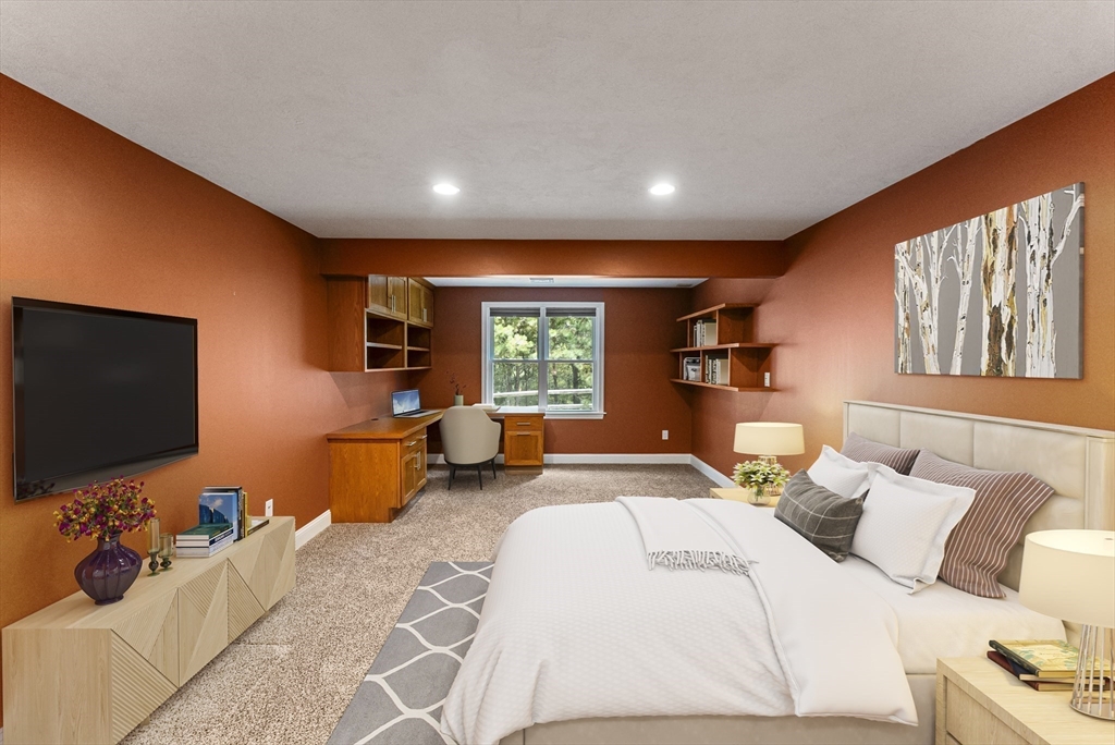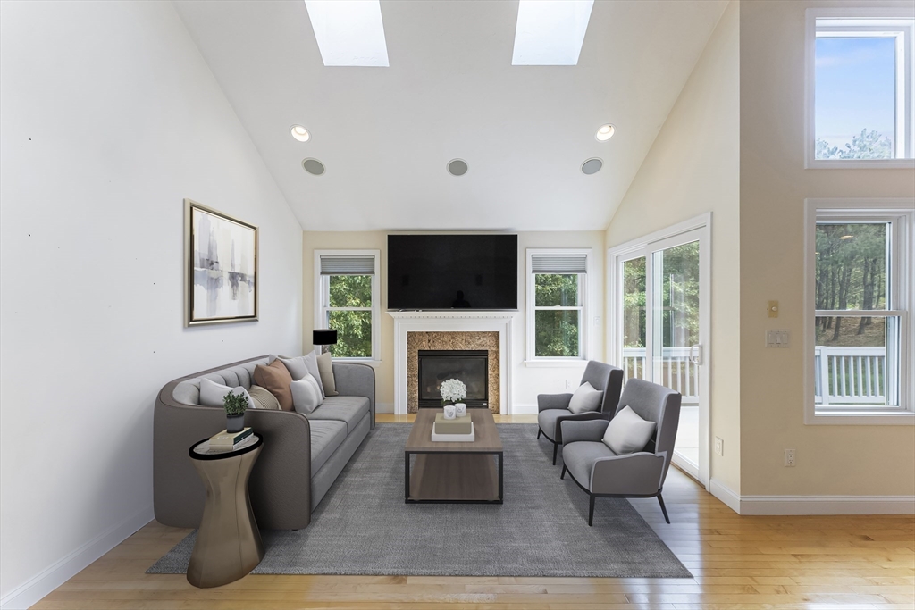 One of the most desirable floor plans in Pinehills, this exceptional property features an open concept design that fills the space with abundant natural light thanks to numerous windows throughout. Eat-in kitchen is enhanced by a bay window, a dining area & sliding door that lead to an expansive mahogany deck w/ elevated wooded views. Dining room & Great room boasts beautiful hardwood floors & fireplace. Primary suite includes a full bathroom w/ slider that provide access to a private garden. Versatile library, den, or sitting room, w/ a gas fireplace, offers a warm & inviting space. Additionally, a spacious loft serves perfectly as a home office. Guest bedroom has extra storage & bathroom, rounding out the 2nd floor. lower level features a cedar closet, bonus area that can serve multiple purposes, along w/ an additional room that could function as a 3rd bedroom or another flex space w/ a built-in desk. 2 car garage w/ charging station. This development offers a wealth of amenities!