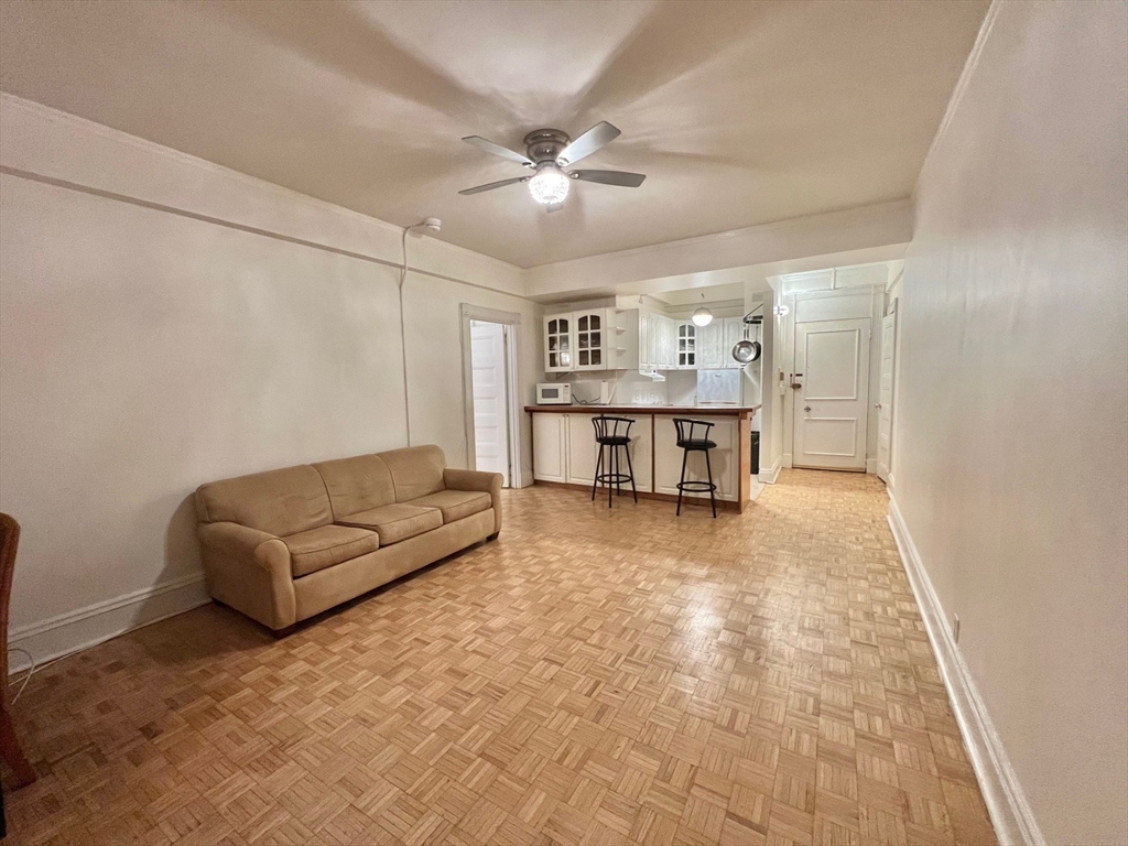 Concierge building most conveniently located close to center of Boston, the State House and the Boston Common. This bright 6th floor one bed faces the State House and has a view of the Boston Common from the large living room window. Ample closet space with gleaming parquet wood floors and 9-feet high ceilings. The updated kitchen has a breakfast bar and dishwasher. Laundry and a trash room on the same floor. With elevators and concierge service with a common roof top and function room overlooking the Boston Common, this building features a beautiful lobby, onsite management. Amazing panoramic views of downtown Boston and beyond from the roof top. With its perfect Walk-Score and located at the heart of Beacon Hill/Back Bay, downtown Boston is at the front door with barely a few steps to Boston Common, MGH, subways, shopping, restaurants, the Financial District, Government Center, and other commuter routes. All utilities (electricity, heat and hot water) are included.