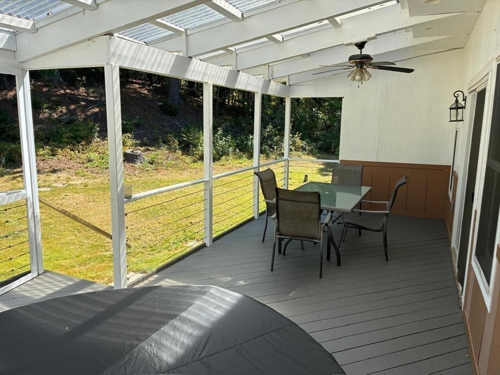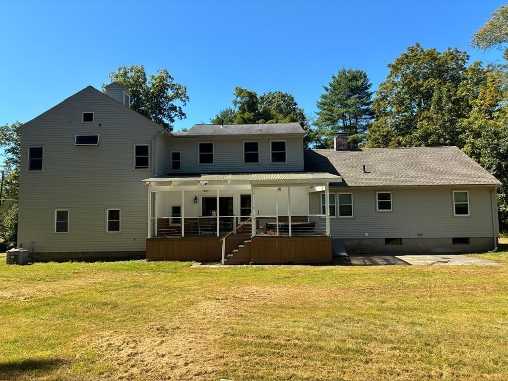 You must see this beautiful home that was recently updated with many new features. With just under 2,300sf of living space, this home has 6-bedrooms and 3 full bathrooms to accommodate your growing family. You will love the real wood-burning fireplace in the winter, the attached 2-car garage with a big work bench and many cabinets for all your storage needs. The main house was updated with a granite kitchen, all new windows, a new roof and a new high-efficiency propane boiler. A full bathroom with a double shower was just installed to the master bedroom above the garage. The full basement with a bulkhead has plenty of space for a home gym and all your storage needs. You will relax in your hot tub on the back deck that is covered and surrounded by nature. Your family and friends will enjoy the slate-stone patio that was installed. Set in a quiet neighborhood on 4 acres of privacy just 1 mile from the Amherst Town border, with easy access to local colleges, shopping, and area amenities