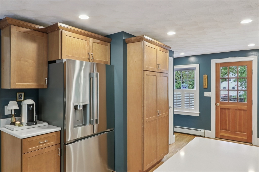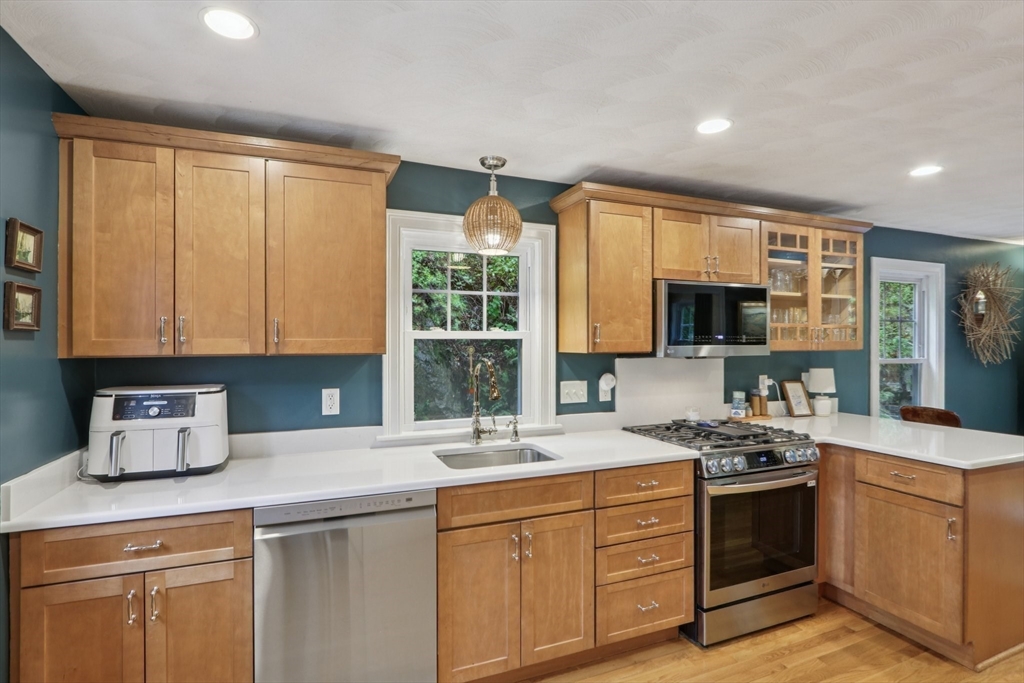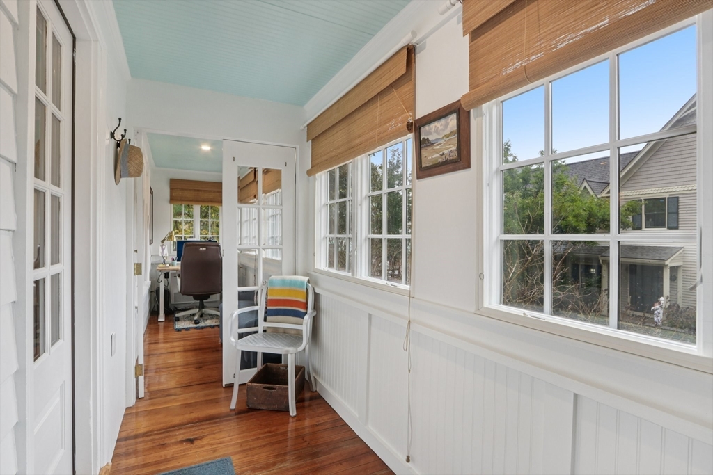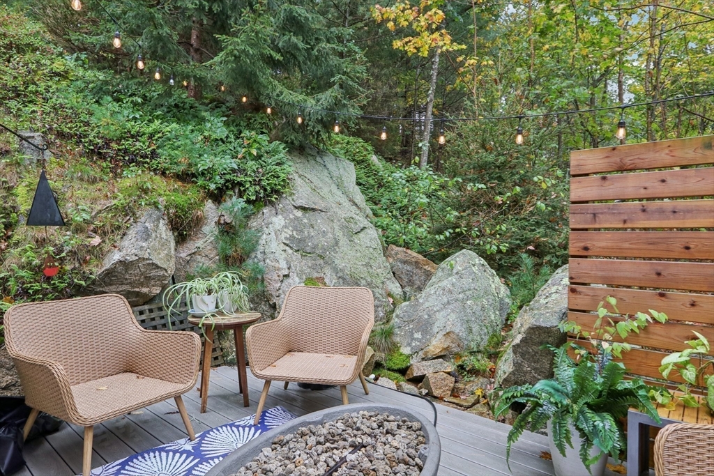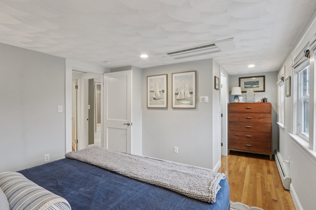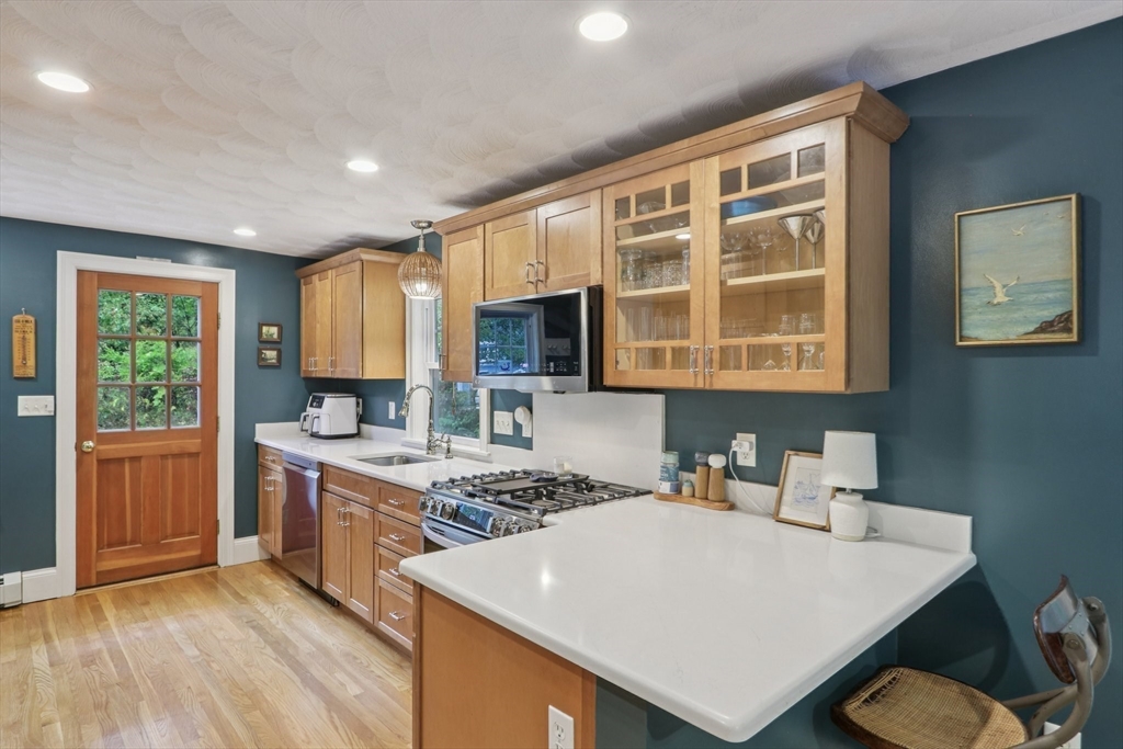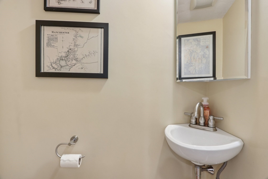 PRIME MANCHESTER VILLAGE LOCATION!. perfectly situated less than a mile from Singing Beach & just a half-mile to downtown & the commuter rail, making for an easy commute. Enjoy this move-in ready home with enclosed heated finished porch that has been transformed into a mudroom and office with beautiful natural light, beadboard & molding. Kick back & enjoy this cozy living room w/gas fireplace & large coat closet. The eat-in kitchen is the heart of the home with warm finishes, quartz countertops, newer cabinets, 2025 appliances & 1st floor half bath. Entertaining is a breeze as the kitchen spills out onto the sweetest patio with private enclosure & lush plantings. Enclosed area for pets to roam below patio or room to expand the deck. The second level boasts laundry room & an oversized updated bath. Large walk in closet in Primary bedroom. Second bedroom on this floor too.All this & hardwood floors throughout, gas, ductless minisplits, 5 car driveway & EV charge, storage in basement