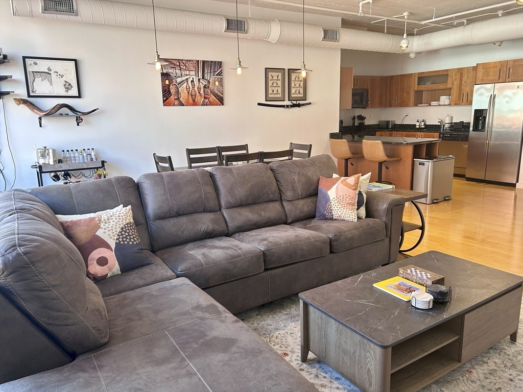 The best of Boston living is right here, this incredible penthouse with breathtaking views and prime downtown location is your ticket to living like a Boston VIP! Top-floor 1BR/2BA penthouse offering 1,119 Sqft. with city views in a prime Boston location available starting November 1st (date flexible). Lease runs through July 2026 NO BROKER FEE—saving you around $3,650! The unit features in-unit washer/dryer, central A/C, and building amenities such as a doorman, gym, storage, and bike racks. Located just three blocks from South Station and within walking distance to Seaport and Boston Common, it’s perfect for downtown living. The current tenant is offering a $5,000 furniture buyout, including (Bed Frame, Mattress, Couch (queen pull-out bed), TV/TV stand, Desk, Monitor, Printer, Dining Table, Chairs, Coffee table, Rug, Fully stocked kitchen (dishes, cookware, glassware, etc) so you can move right in and not worry about moving trucks and furniture shopping! Ask for video tour!