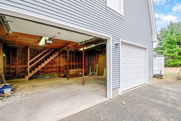 The charm of an original family home on approximately 1.5 acres, close to the Ludlow line. Roof, siding, and most windows updated . The full bath was remodeled to the studs in 2019 and has a linen closet. The first floor features an open kitchen, wide living room, dining room, and bath. A conveniently located first floor laundry is in the mudroom entry. Second floor tandem bedroom with three additional bedrooms off of it. Wood floors. Enclosed front and back porches. Large two story, two car garage built with a full floor walk up. The garage has a circuit breaker panel .There is a barn and a coop with electricity. Definitely a unique property!