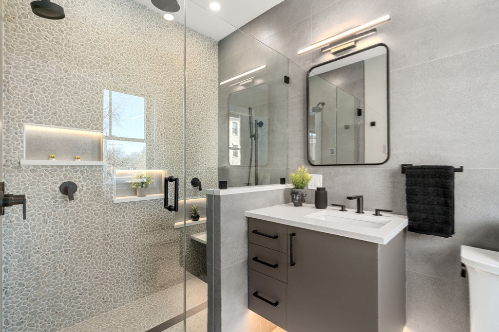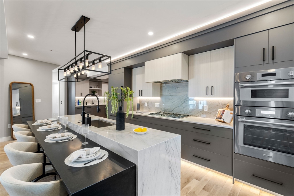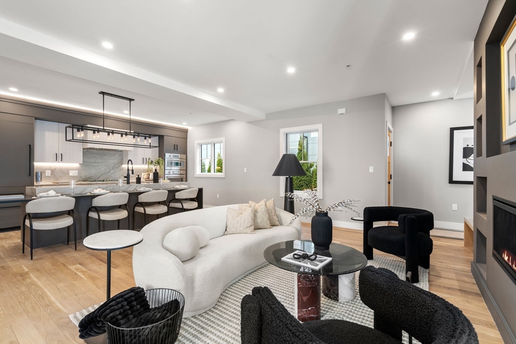 This stunning new construction condo has it all - 3 beds, 3.5 baths, elevator, 2-car garage, private fenced yard w/deck and patio! Inspired design and exceptional attention to detail combine to create a sophisticated, comfortable and versatile living environment. Elegant living room features gas fireplace, built-ins, and French doors that open to deck/yard, allowing for easy indoor-outdoor lifestyle. Well-appointed kitchen offers Thermador appliances, custom cabinetry, large island w/breakfast bar, dining area, wet bar, pantry. Family room offers flexible use as media room, playroom, home office. First-floor bedroom suite features spa-like bathroom. Upstairs primary bedroom suite is a sanctuary, complete w/luxurious bathroom, walk-in closet, balcony. Second floor has add’l bedroom with en suite bath, plus laundry area. Private elevator access from garage to all floors. Front entrance w/mudroom area. Convenient to shops, restaurants, schools, public transp’n, Longwood Medical, downtown.