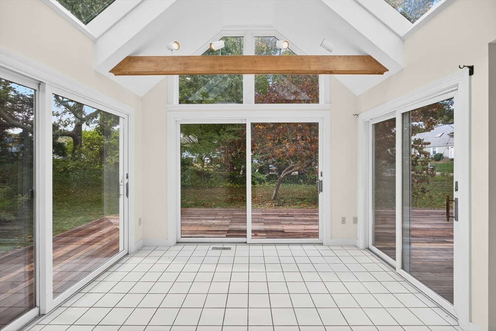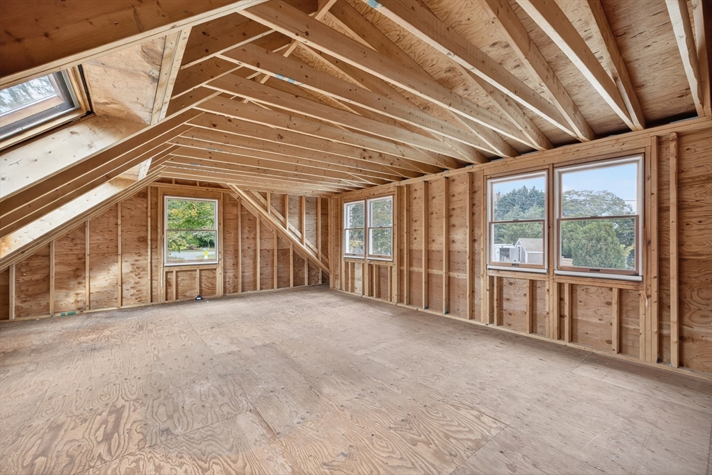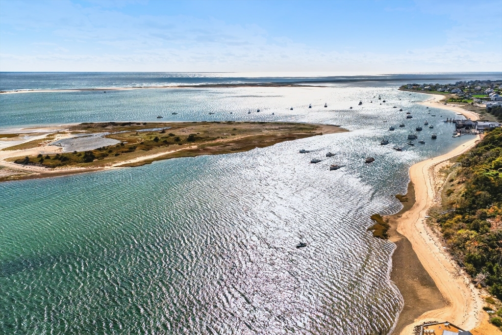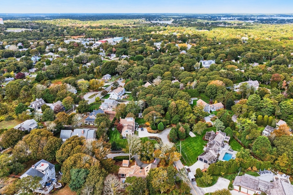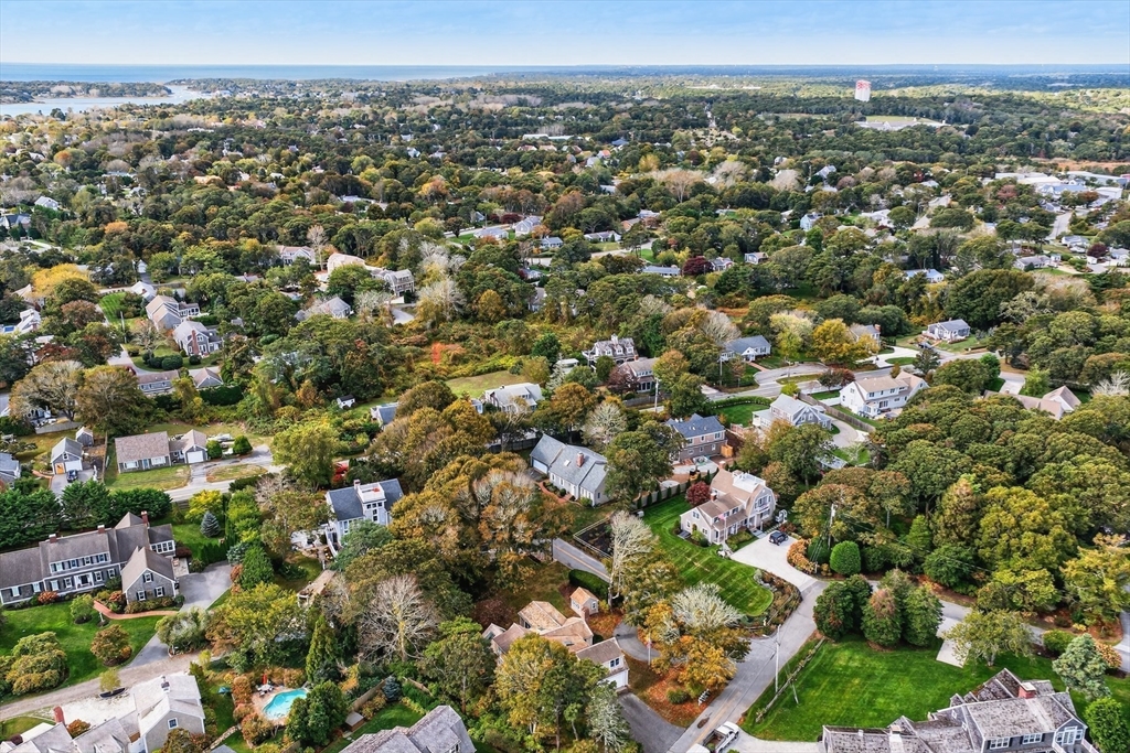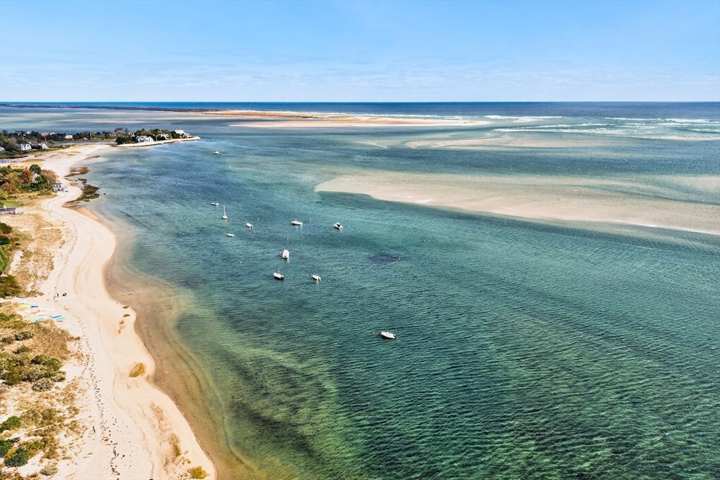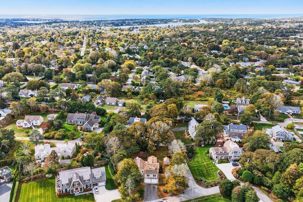 Set within one of North Chatham's most coveted enclaves—surrounded by multi-million-dollar homes and moments from the village—this 5-bedroom, 3-bath residence blends timeless Cape charm with outstanding potential. The property enjoys a picturesque corner setting with mature landscaping, perennial gardens, and glimpses of the nearby harbor that hint at its waterview possibilities. Inside, sun-filled living spaces feature antique wide-plank floors, custom built-ins, and a wood-burning fireplace that anchors the inviting living room. Two first-floor ensuite bedrooms provide flexibility for guests or single-level living, while a bright dining room, kitchen, and sunroom open to an expansive wraparound deck for effortless indoor-outdoor entertaining. Upstairs are two additional bedrooms, a full bath, and a large unfinished bonus room above the oversized two-bay garage—ideal for future expansion. Enjoy an easy walk to Cow Yard Beach, the Fish Pier, Chatham Bars Inn, and the shops and restaura