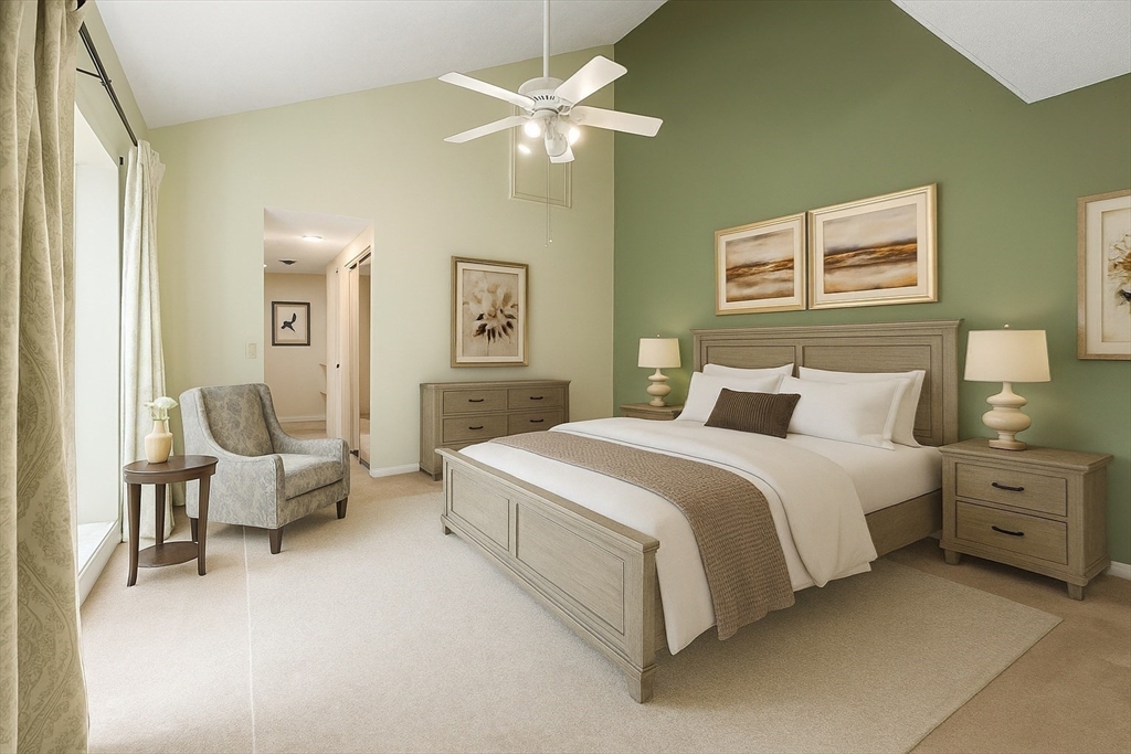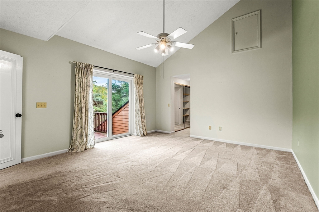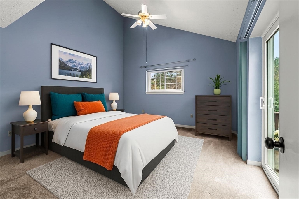 Come home to luxury living at Milford Country Club, a hidden gem offering golf, pickleball, swimming pool, and clubhouse amenities. This three-level condo features an open kitchen/dining area with stainless-steel appliances, solid counters, and hardwood floors flowing into a fireplaced living room. Sliding doors lead to a massive, covered porch, perfect for entertaining. Upstairs, the primary suite boasts a vaulted ceiling, walk-in closet, soaking tub, and walk-in shower. A second vaulted bedroom includes its own full bath and balcony access. The finished lower level offers a laundry area, office or teen hangout, and direct entry to a two-car garage. Professionally landscaped and close to major routes, this home blends comfort, style, and a resort-like lifestyle. A sought-after floor plan in a highly desirable community setting.