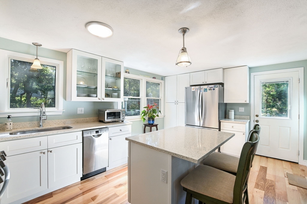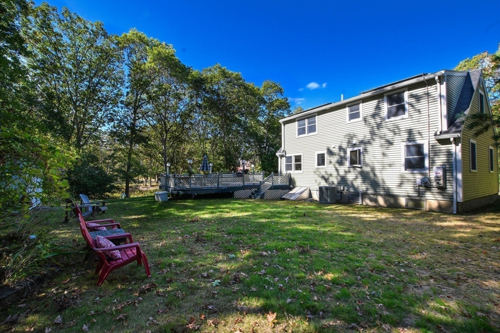 Here's a great opportunity! This tastefully appointed, move-in-ready traditional Cape boasts many upgrades. Features include an open living area, 4 bedrooms, 2 full baths, hickory flooring throughout, a kitchen with Curava countertops and new appliances, basement with rigid foam insulation, vinyl exterior, central vacuum and central air. Brand new whole house water filtration system. The Anderson windows and septic system are relatively new, and solar panels are assumable. Enjoy a spacious half-acre lot, an enormous deck for entertaining, and a shed for storage. Close to Megansett Beach, fishing, Mashpee Commons with its many offerings, and convenient bridge access. Welcome to the Cape Cod lifestyle!