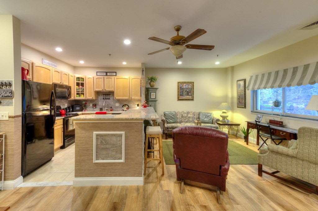 Discover contemporary comfort and convenience in this beautifully appointed 1-bedroom, 1-bath condo. Designed for effortless one-level living, this home features modern upgrades and a seamless open-concept layout that's perfect for both relaxation and entertaining; Enjoy the ease of single-floor living in a thoughtfully designed space. Durable, stylish luxury vinyl plank flooring runs throughout the home, providing a sleek and low-maintenance.The spacious living room and dining area blend together, creating an inviting atmosphere with plenty of natural light from the slider & window. The kitchen is a chef’s dream with elegant granite countertops, providing ample space for meal preparation and entertaining. The generously sized main bedroom features a large walk-in closet, offering plenty of storage.The full bath boasts modern fixtures and a clean, fresh design. Laundry in unit and storage across the hall. Condo fee includes heat! A huge plus for this upcoming Winter season