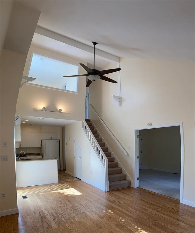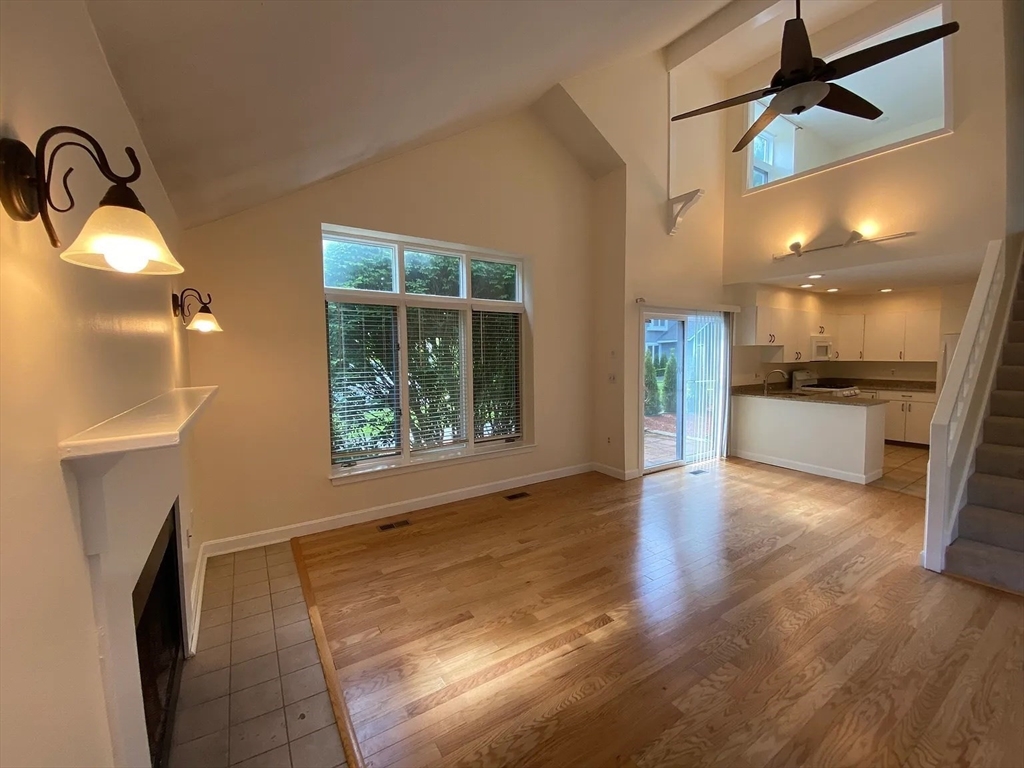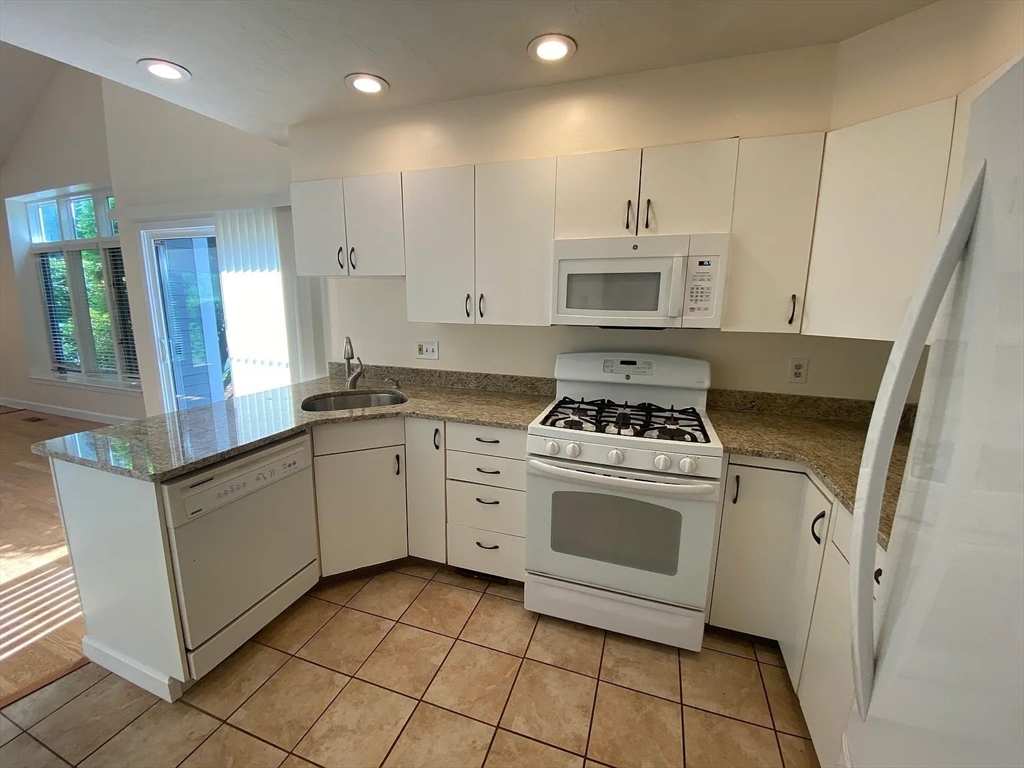 This is a beautiful 2 bed 2 full bath condo with open concept kitchen with full appliances , dining and living space with fireplace and sliders to charming patio, with green spaces and maintained landscaping area. In unit washer/dryer,High ceilings, natural lights with lofted Bonus room. Ample parking close to Routes 495, 290, Solomon Pond Mall, walking trails and great schools.