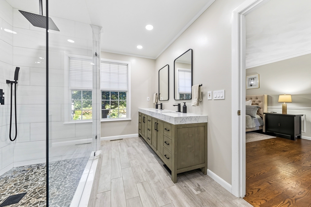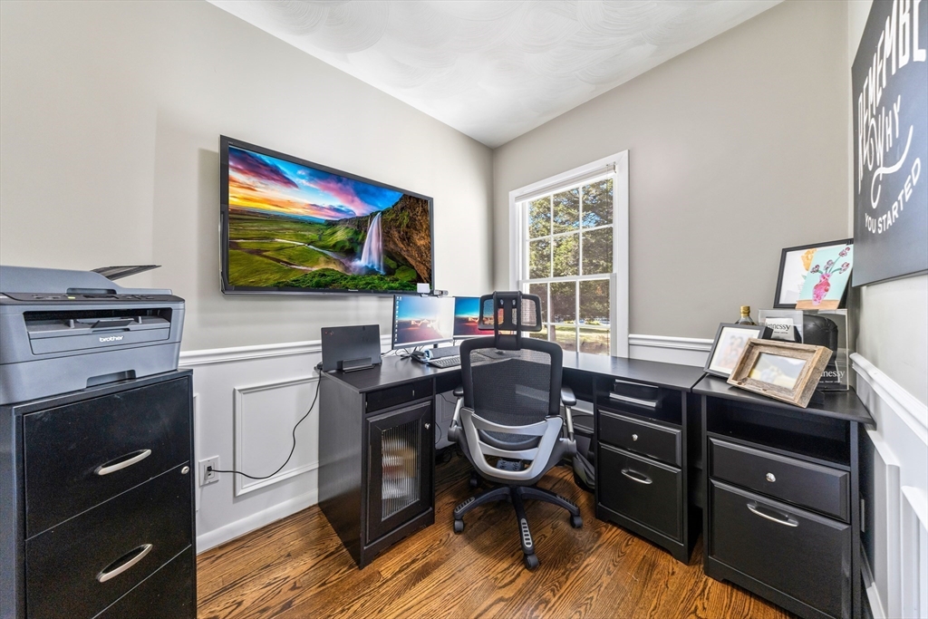 Stunning luxury ranch-style smart home behind a private gated entrance with open-concept layout and center fireplace. Features 3 spacious bedrooms, 2 beautifull spa like bathrooms, and a dedicated small office. Gourmet kitchen with gorgeous cabinetry, high-end appliances, and ample prep space. Sunroom/flex room perfect for exercise or relaxation. Smart home tech controls lighting, climate, and security. Brick front exterior with circular drive. Sits on a perfectly landscaped 1-acre lot with an expansive patio, private hot tub, and plenty of outdoor entertaining space. Soaring ceilings, upscale finishes throughout, and thoughtfully designed for modern living. This home blends the peace of ranch life with high-end convenience—don’t miss this rare opportunity!