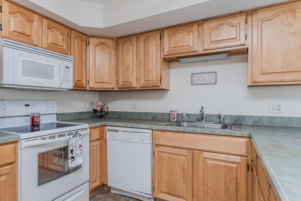 Welcome to Greenleaves, a 55+ community that is well maintained and inviting. This first floor, one bedroom, one bathroom condo with in-unit laundry is comfort, simplicity and convenience at its best and is located close to the main entrance and all common areas. New HVAC and hot water tank (2024) and newer handicapped walk-in shower. Take advantage of the common areas such as the library/game room and the clubroom with kitchen for your gatherings. Easy access to the bike path, walking paths, shops and restaurants.